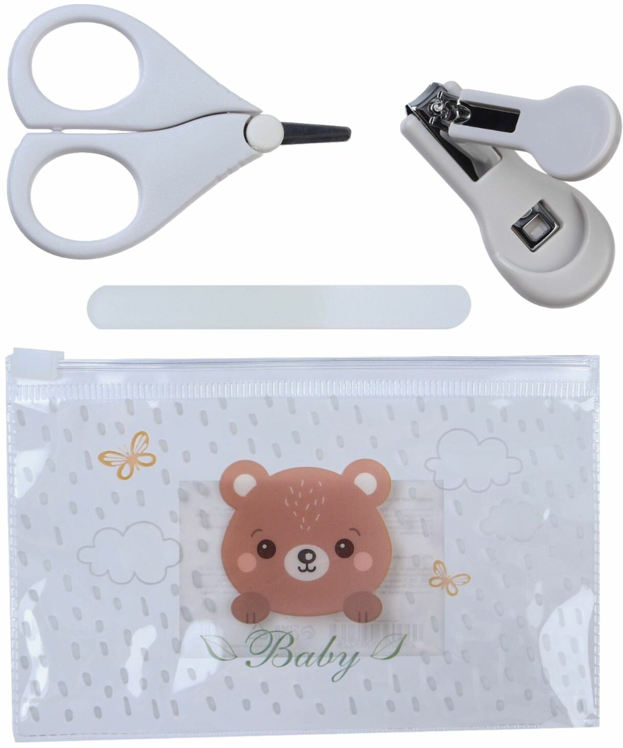 Купить Детский маникюрный набор для самых маленьких "Мишка": ножницы с закругленными кончиками, щипчики и пилка для ногтей
