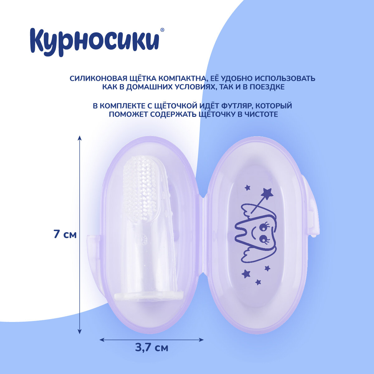 Детская зубная щетка Курносики силиконовая, напальчник с футляром белая, 1 шт интересное: