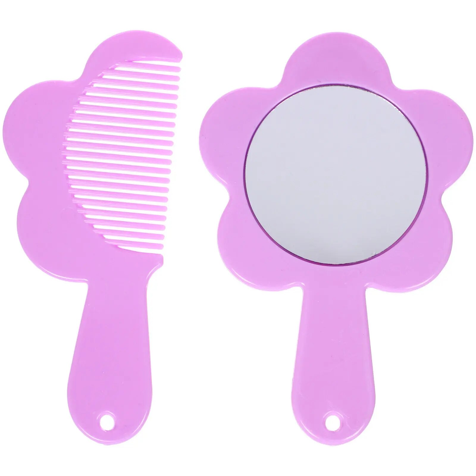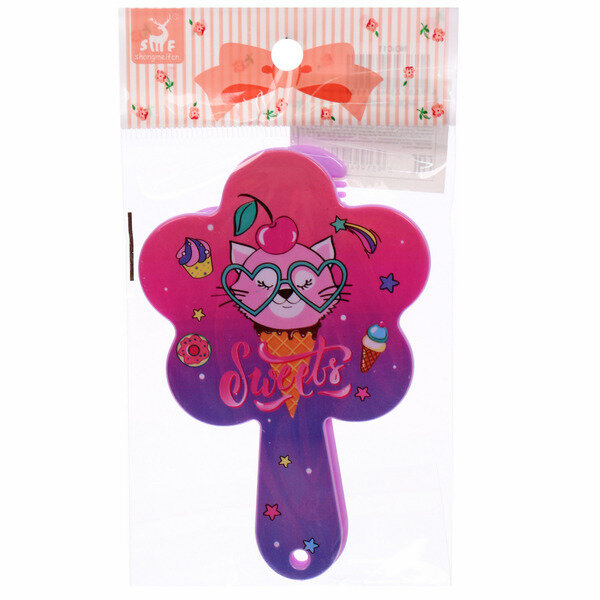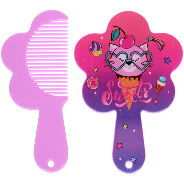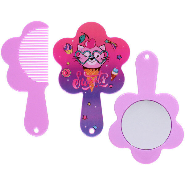 Купить Расческа с зеркалом в наборе детские «мимишки», котик, цвет розово-фиолетовый, 11см