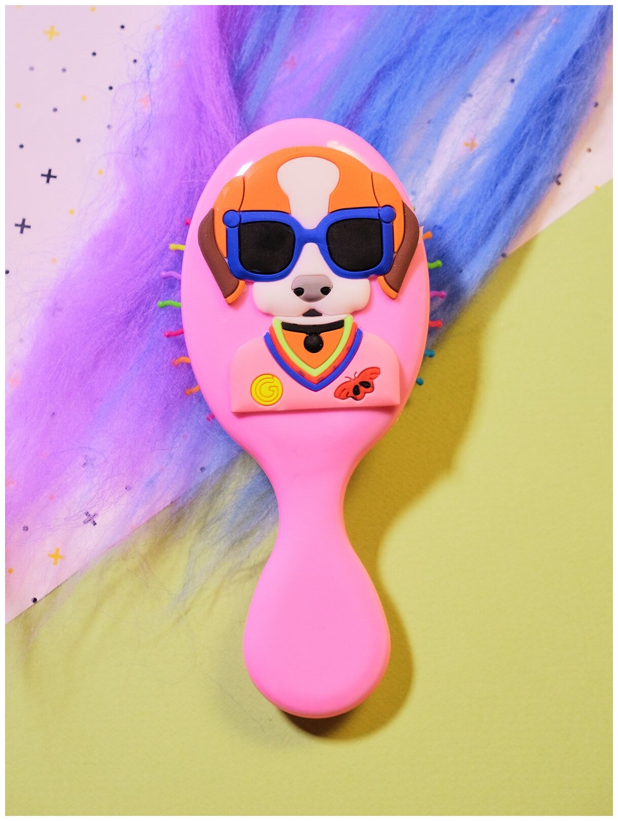 Купить Детская расческа-щетка Baffy "Модный пес", мягкие пластиковые зубцы с закругленными концами, антистатичная, розовая