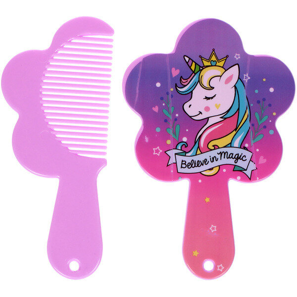 Купить Расческа с зеркалом в наборе детские «мимишки», единорог, цвет розово-фиолетовый, 11см