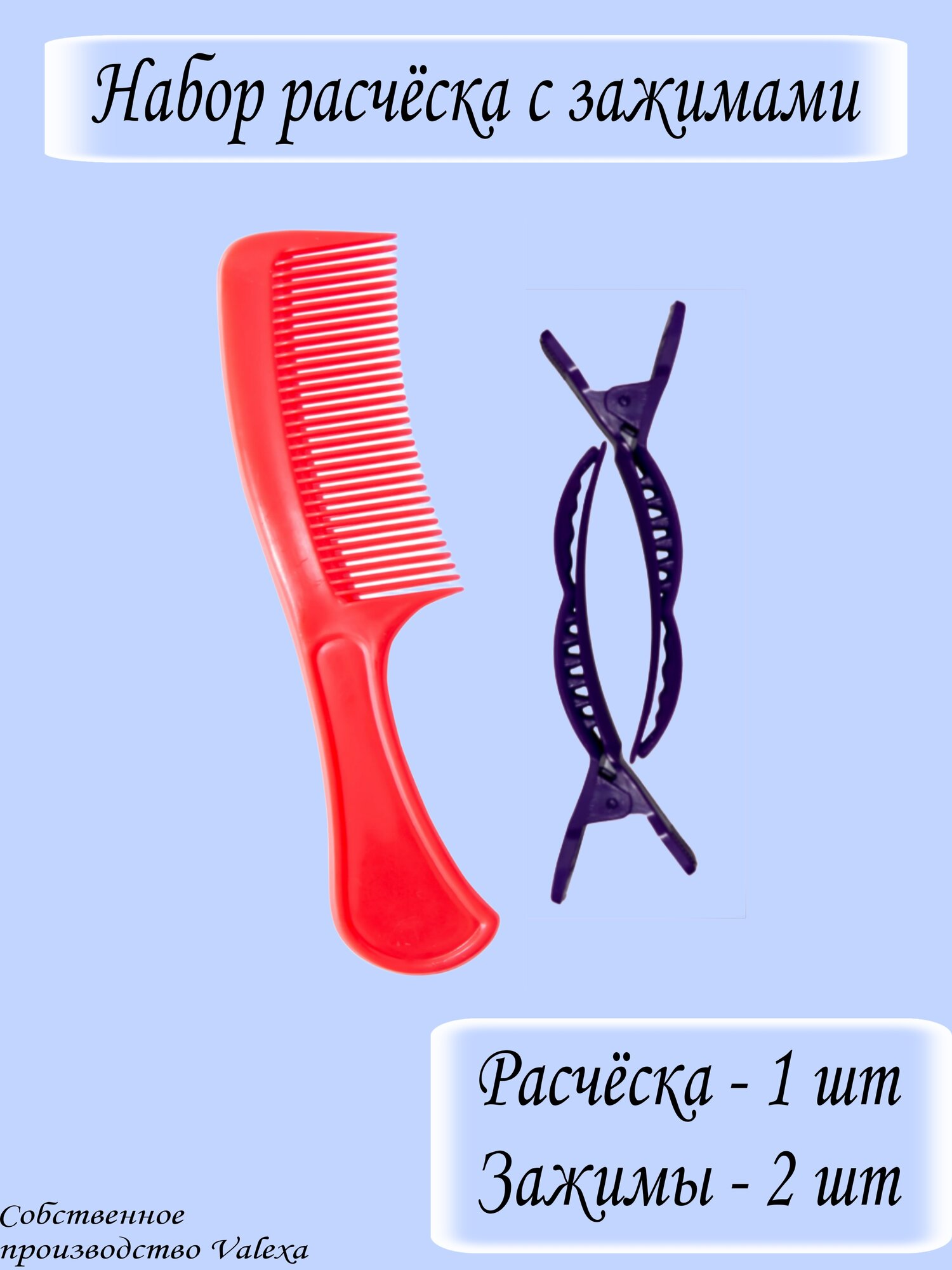 Valexa Набор №70 расческа Р-12 - 1 шт и зажимы 102 - 2 шт интересное: