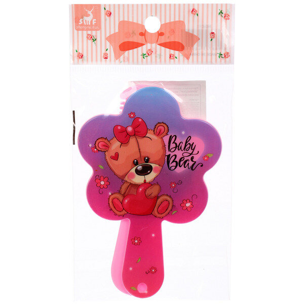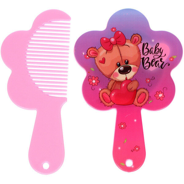 Расческа с зеркалом в наборе детские «мимишки», мишка, цвет розово-фиолетовый, 11см интересное: