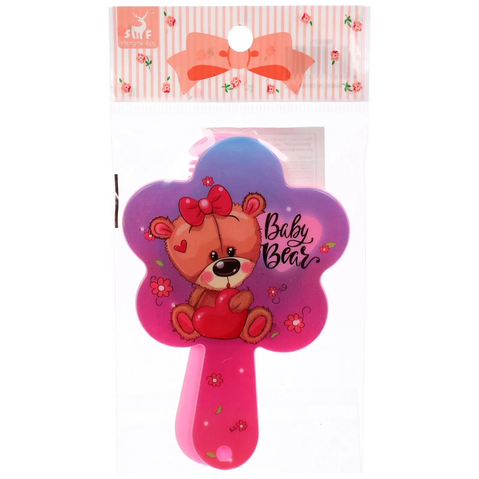 Купить Расческа с зеркалом в наборе детские «мимишки», мишка, цвет розово-фиолетовый, 11см