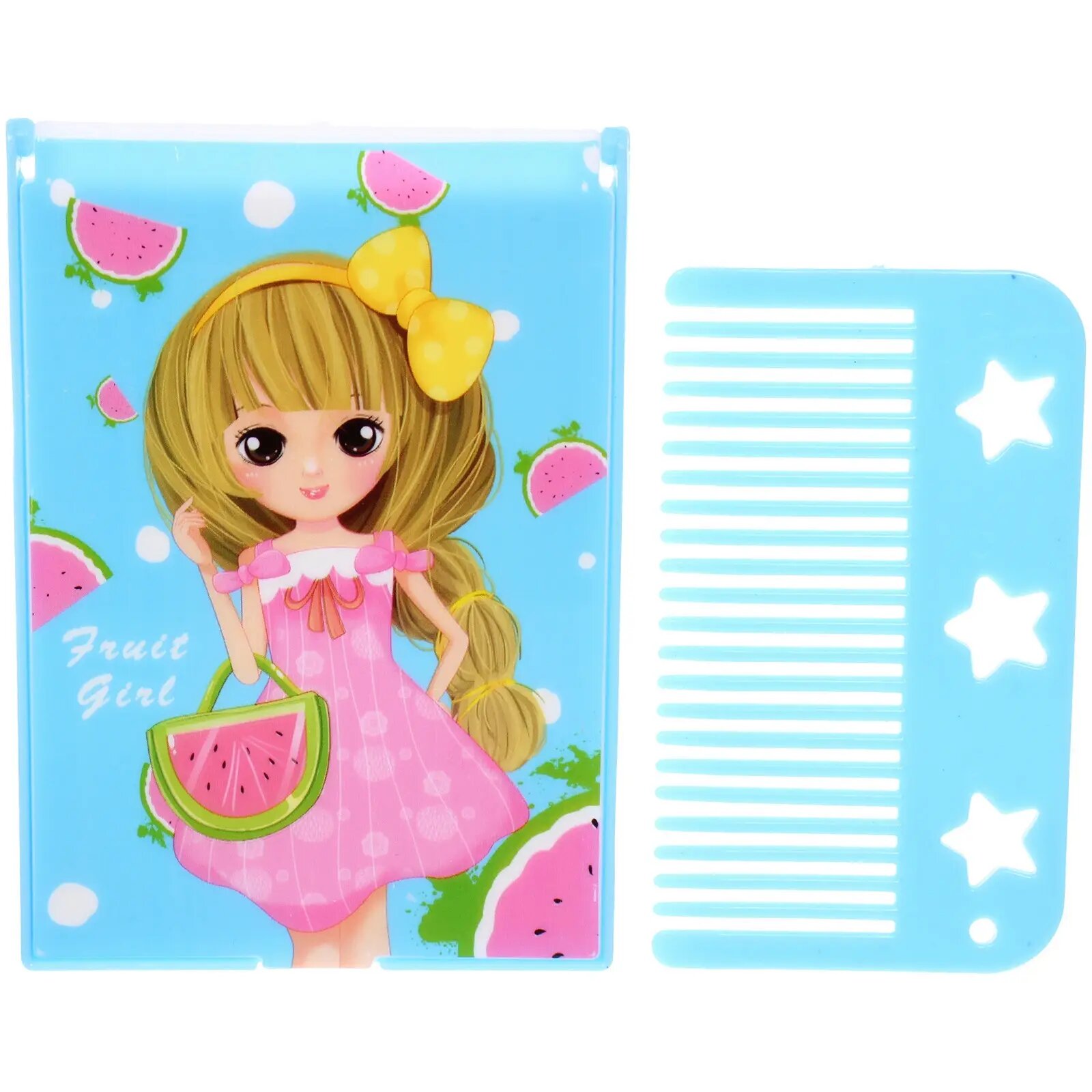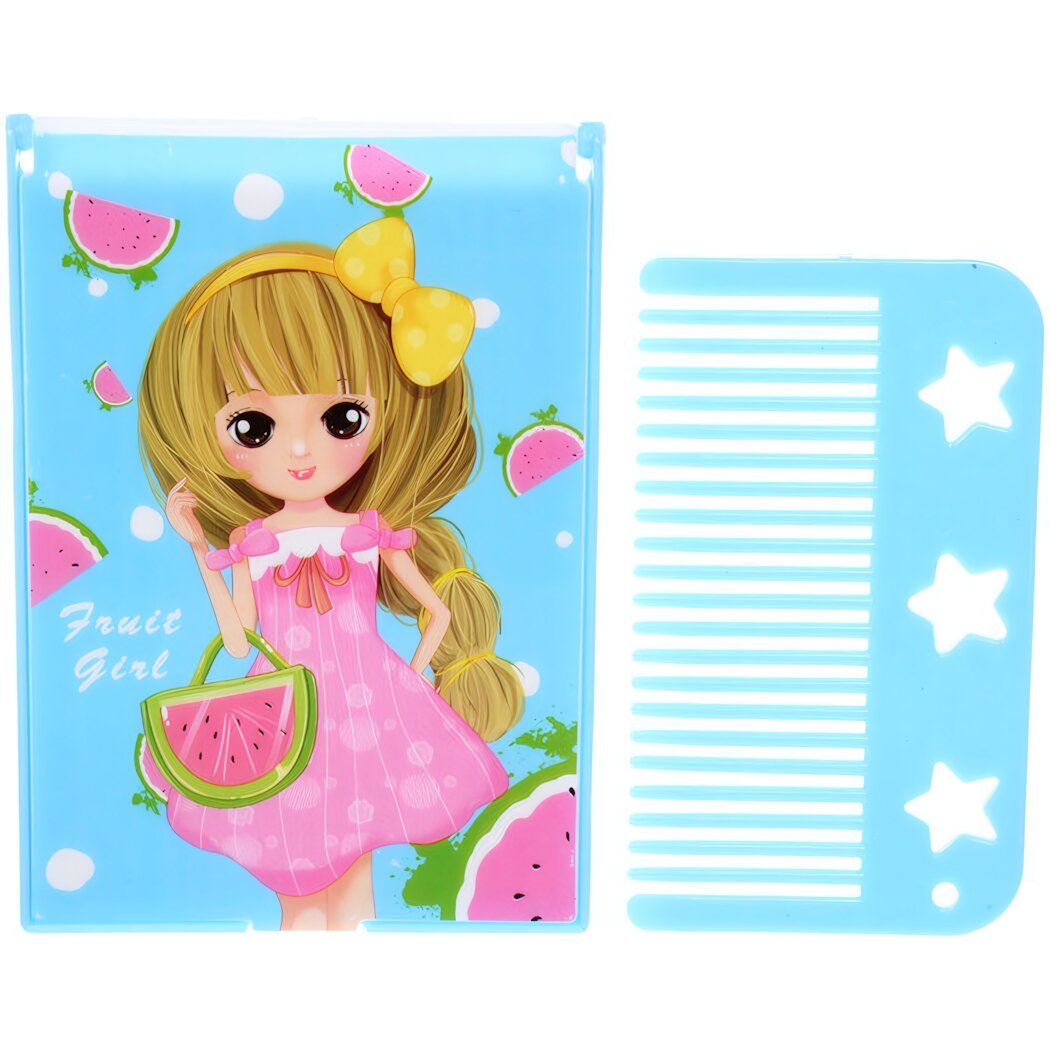 Купить Расческа с зеркалом в наборе детские «мимишки», девочка, цвет голубой, 11*7,8см