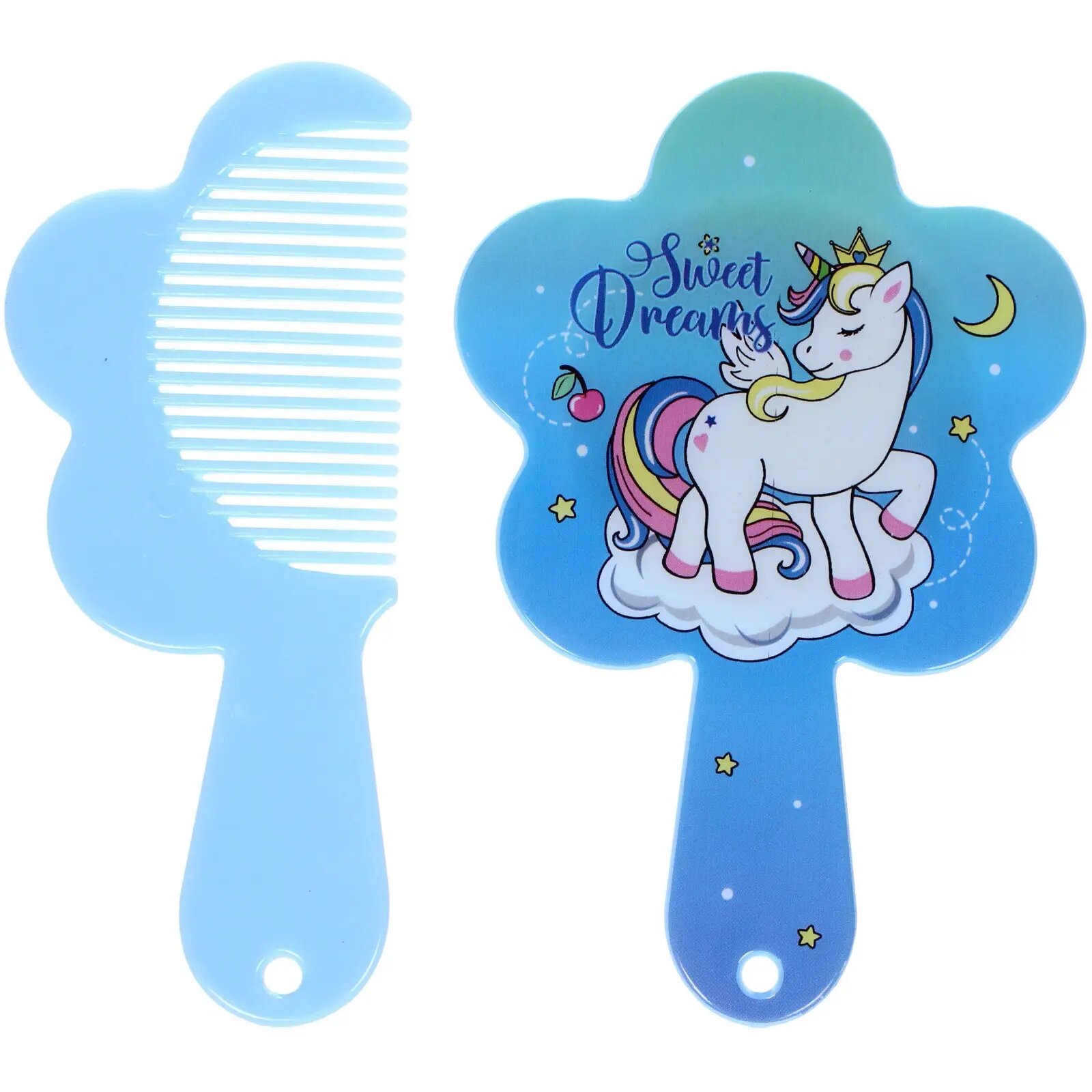 Купить Расческа с зеркалом в наборе детские «мимишки», единорог, цвет голубой, 11см