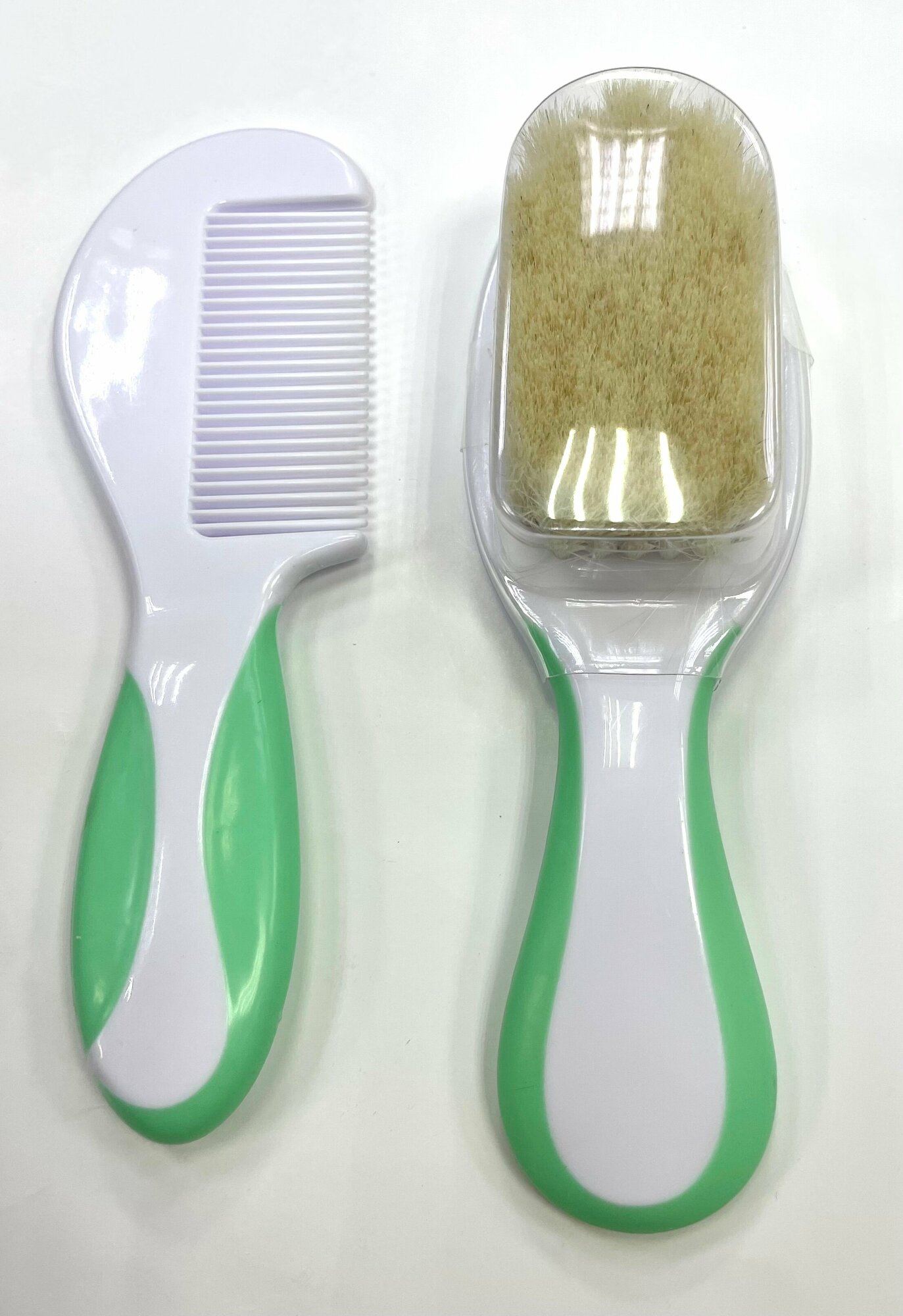 Набор щетка и расческа(натуральная щетина) с рождения, цвет зеленый/белый интересное: