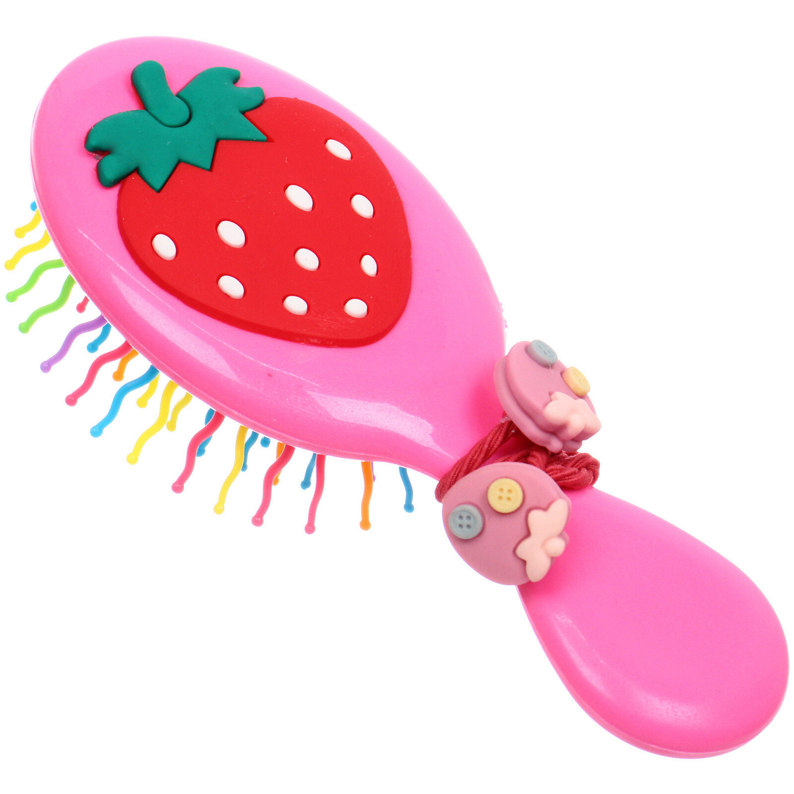 Купить Расческа массажная детская и 2 резинки "мила", клубника, цвет розовый, 14*5,5см (пакет с подвесом), 4 набора