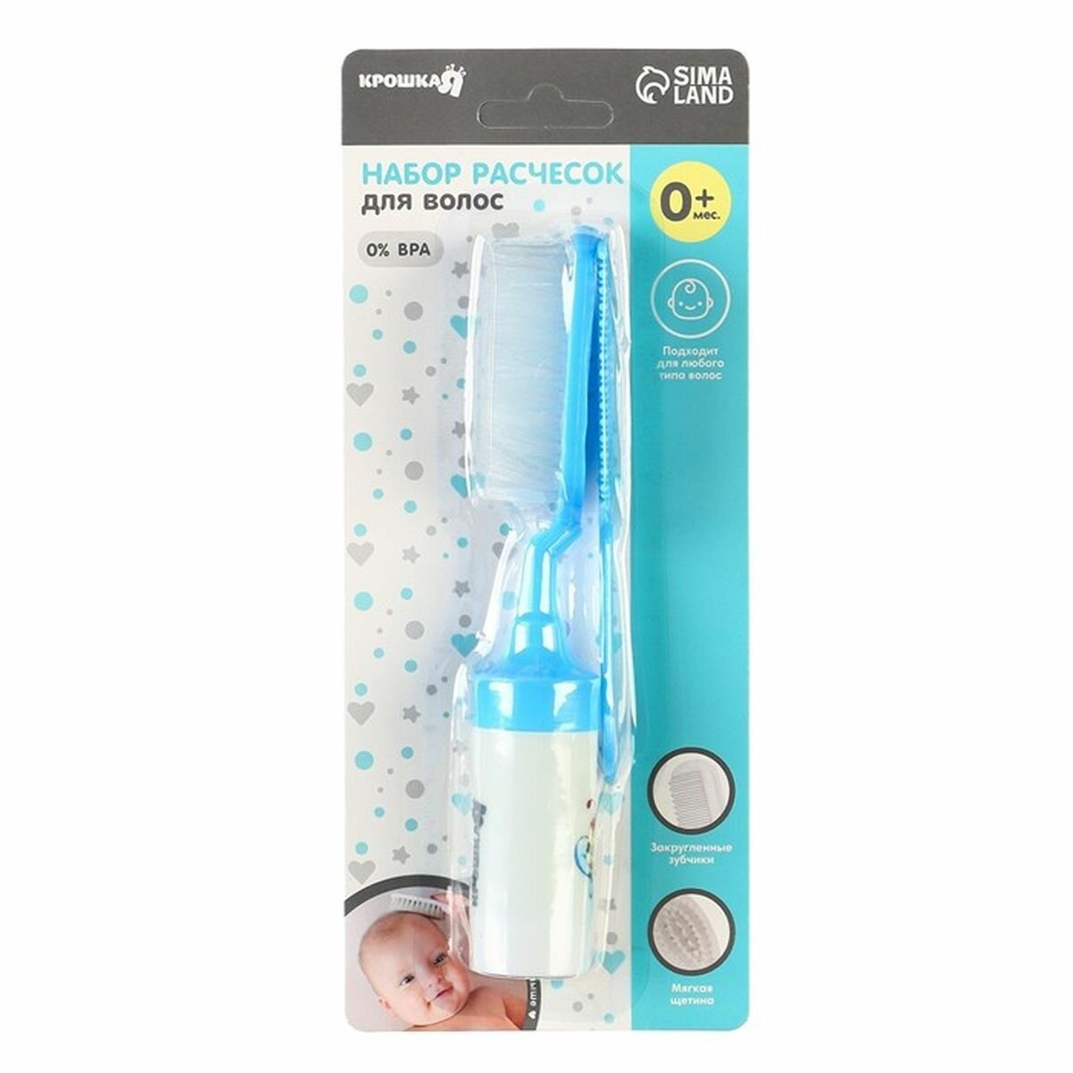 Купить Набор расчесок с погремушкой "Малыш", 2 шт, цвет голубой, рисунок, 1 наб.