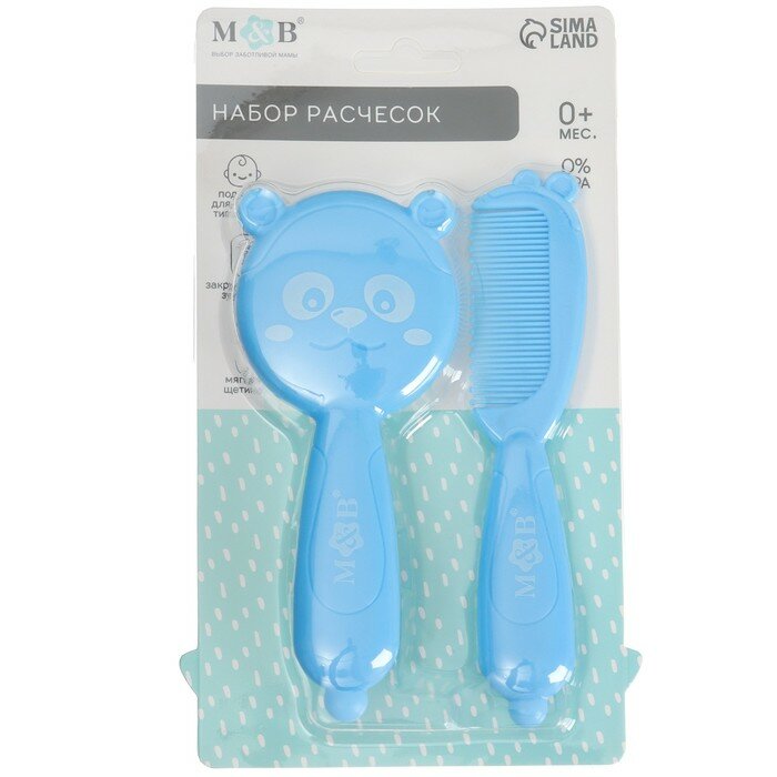 Набор для ухода за волосами: расческа и щетка «Мишка», цвет голубой, 9844152 интересное: