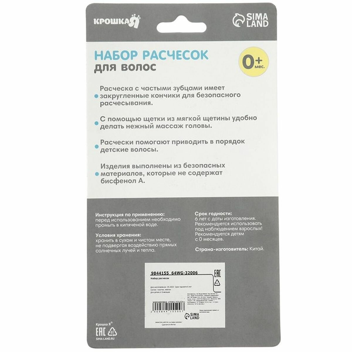 Расчёска детская + массажная щётка для волос, от 0 мес, цвета микс, 2315247