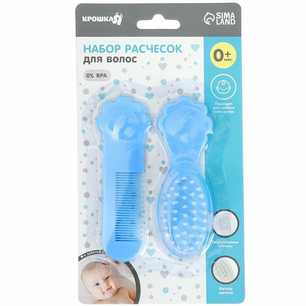 Купить Набор для ухода за волосами: расческа и щетка "Цветочек", цвет голубой, 1 наб.