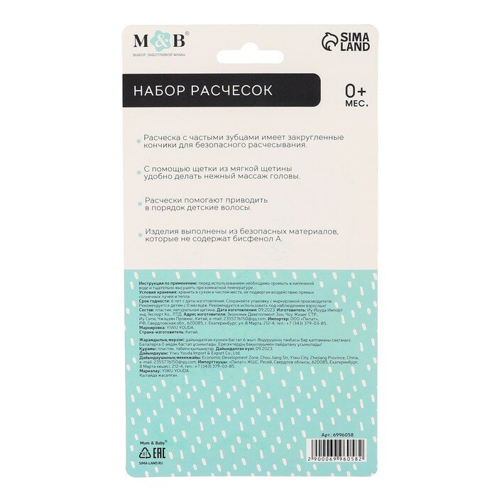 Расчёска детская + массажная щётка для волос, от 0 мес, цвета микс, 2315247