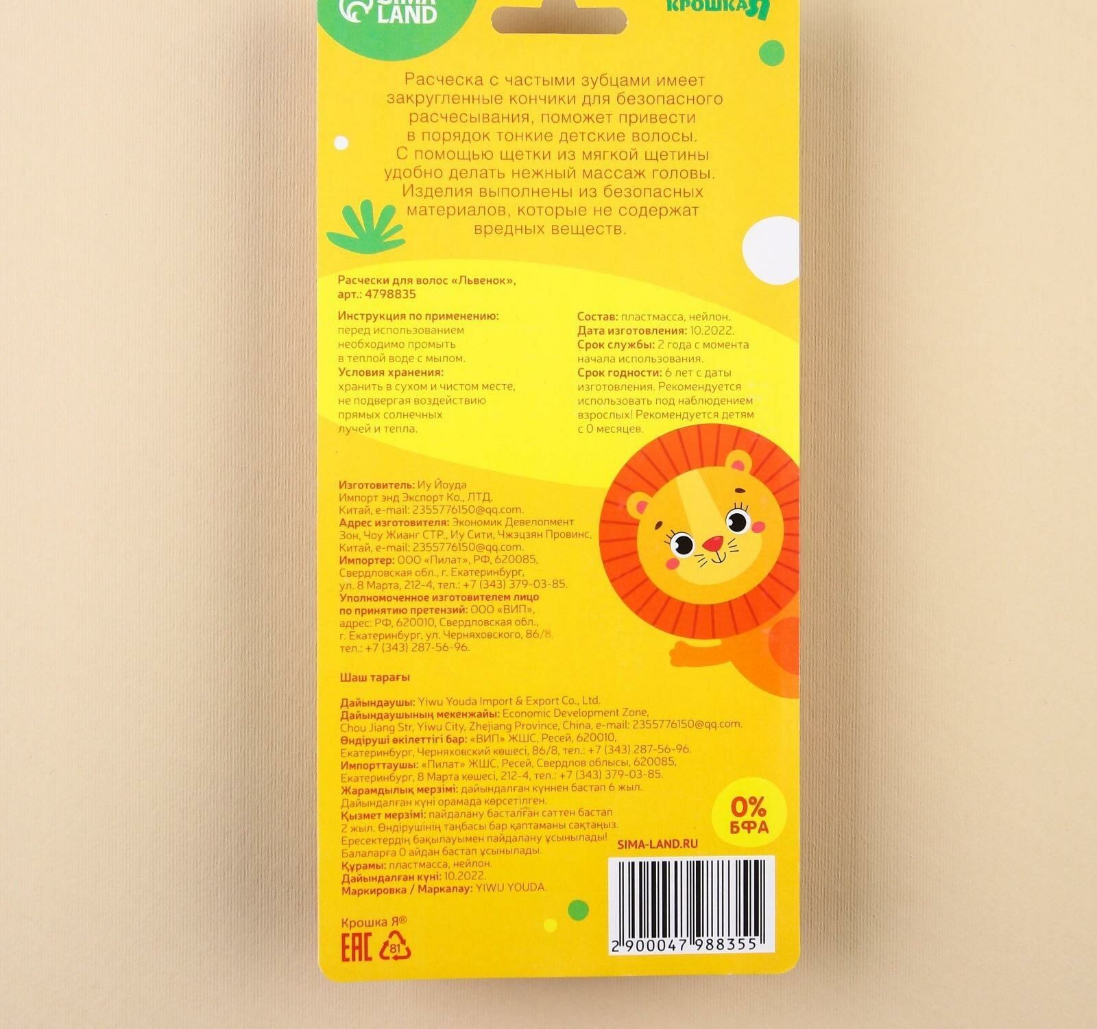 14 шт. Расчёска детская, щётка для волос в наборе с погремушкой «Львёнок» интересное: