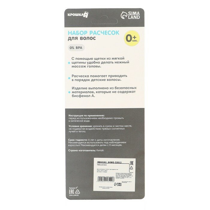 Купить Набор расчесок 2шт «Малыш», цвет желтый, рисунок микс