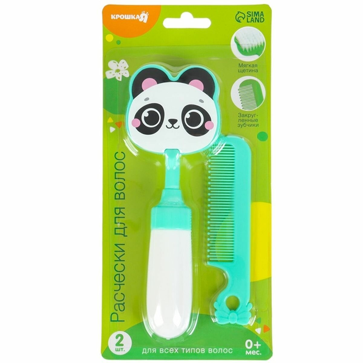 Купить Набор расчёсок с погремушкой "Панда", 2 предмета: расчёска с зубчиками + щётка, 1 наб.
