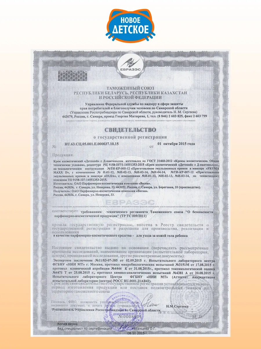 Детский крем Весна с Д-пантенолом гипоаллергенный 3х45 мл интересное: