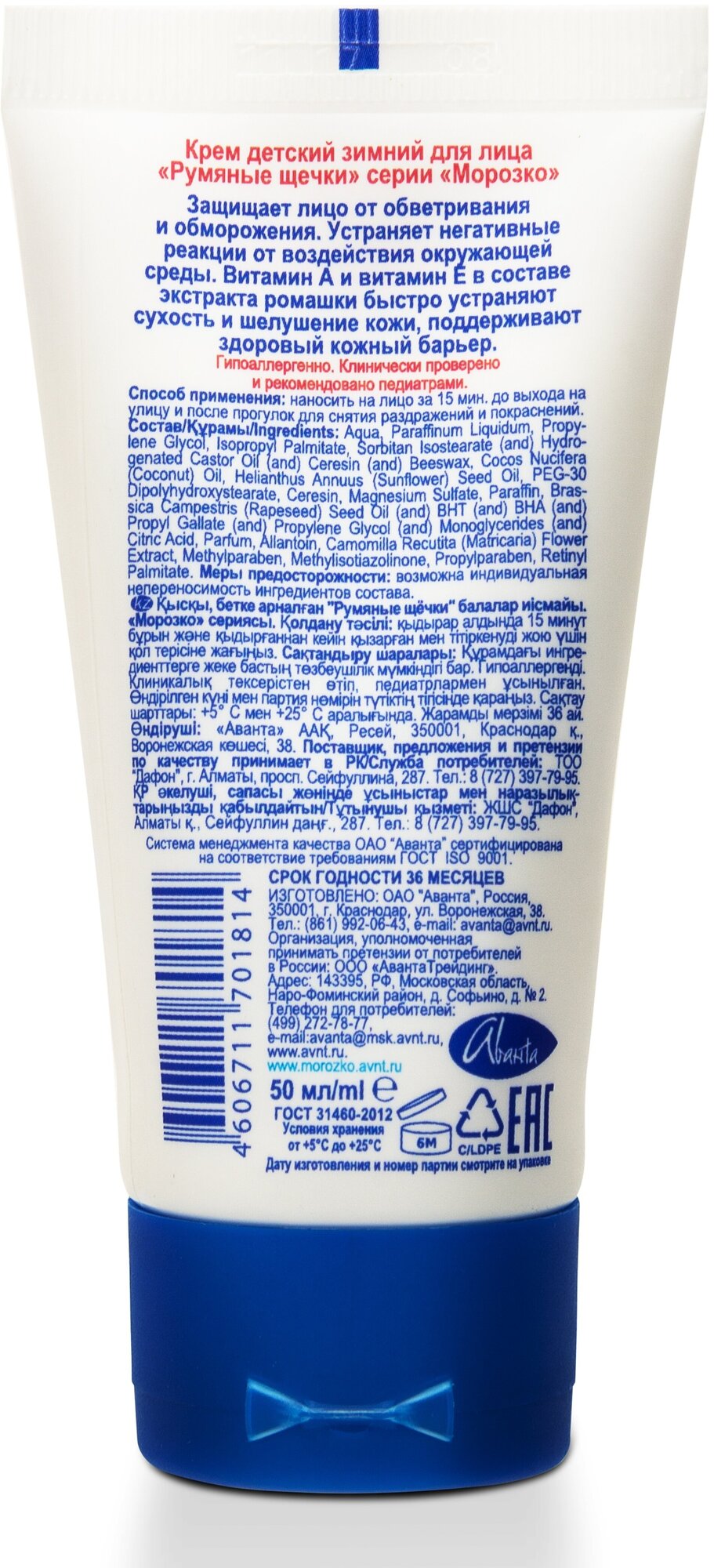 Крем детский зимний Морозко "Румяные щечки", гипоаллергенный, 50 мл интересное: