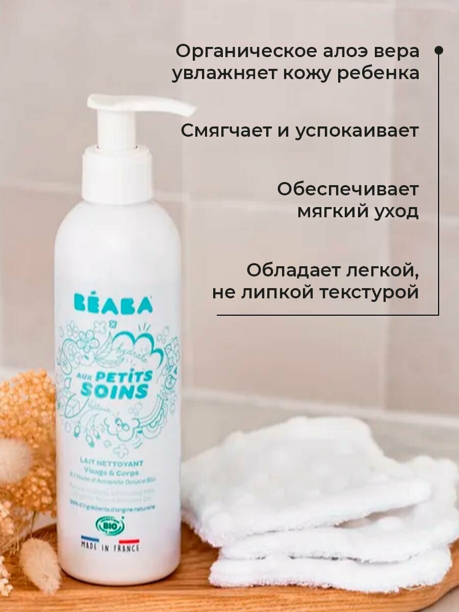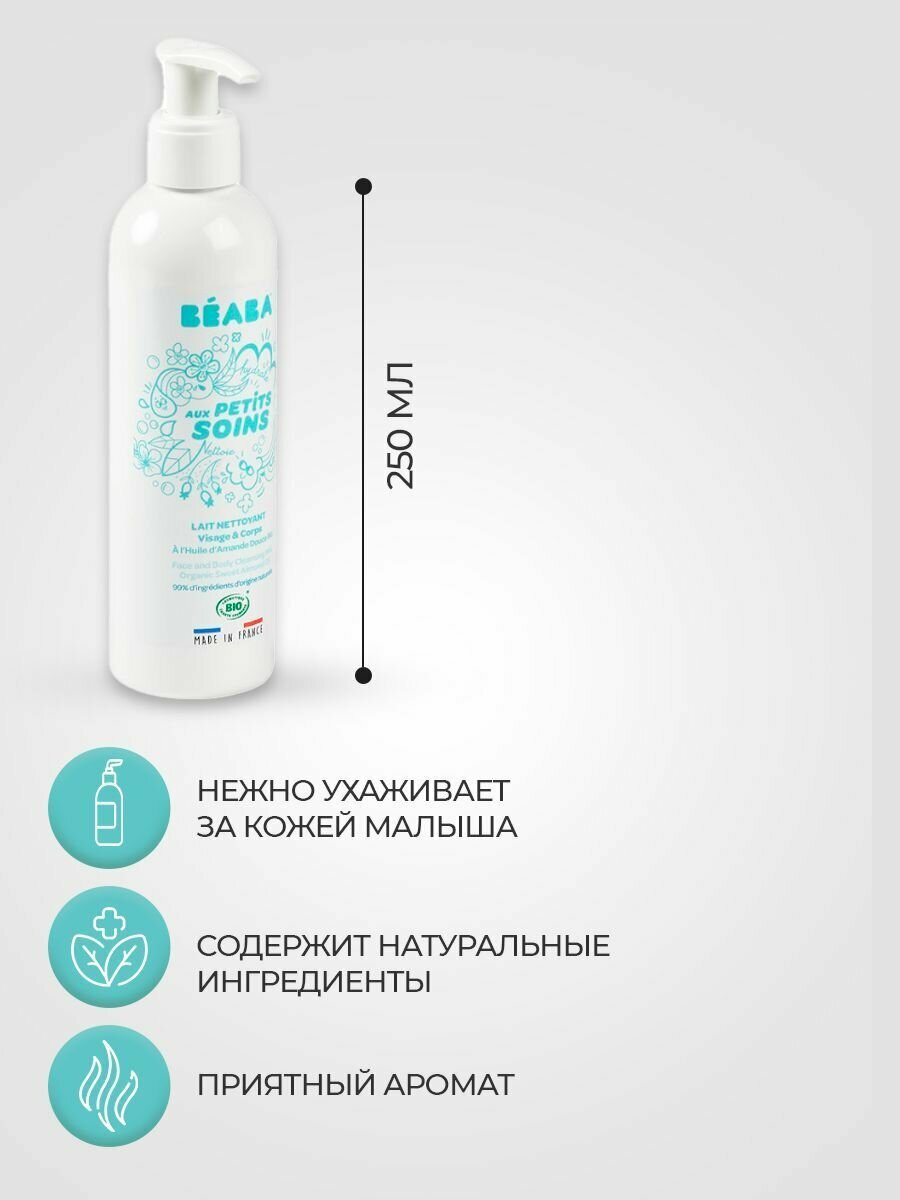 Купить BEABA молочко для тела детское, органическое увлажняющее и очищающее средство для лица и тела со сладким миндальным маслом 250ML