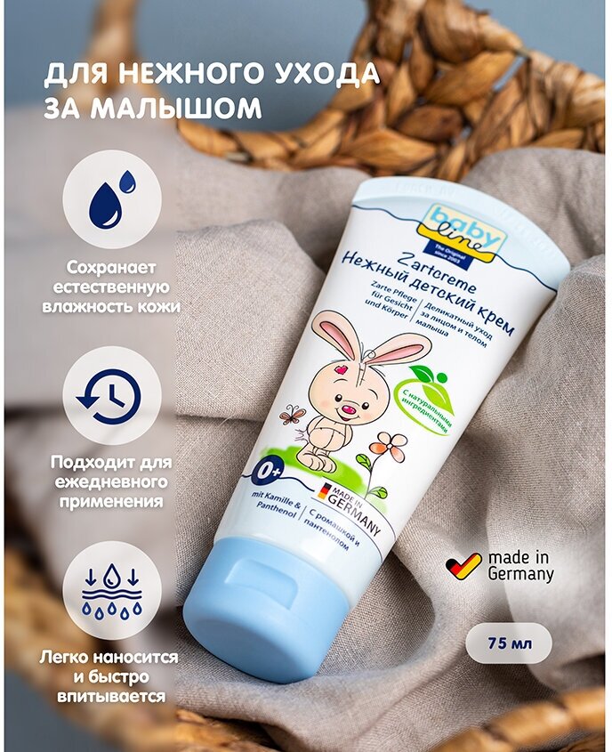 Нежный детский крем baby line с ромашкой, пантенолом и маслом подсолнечника; объем 75 мл. интересное: