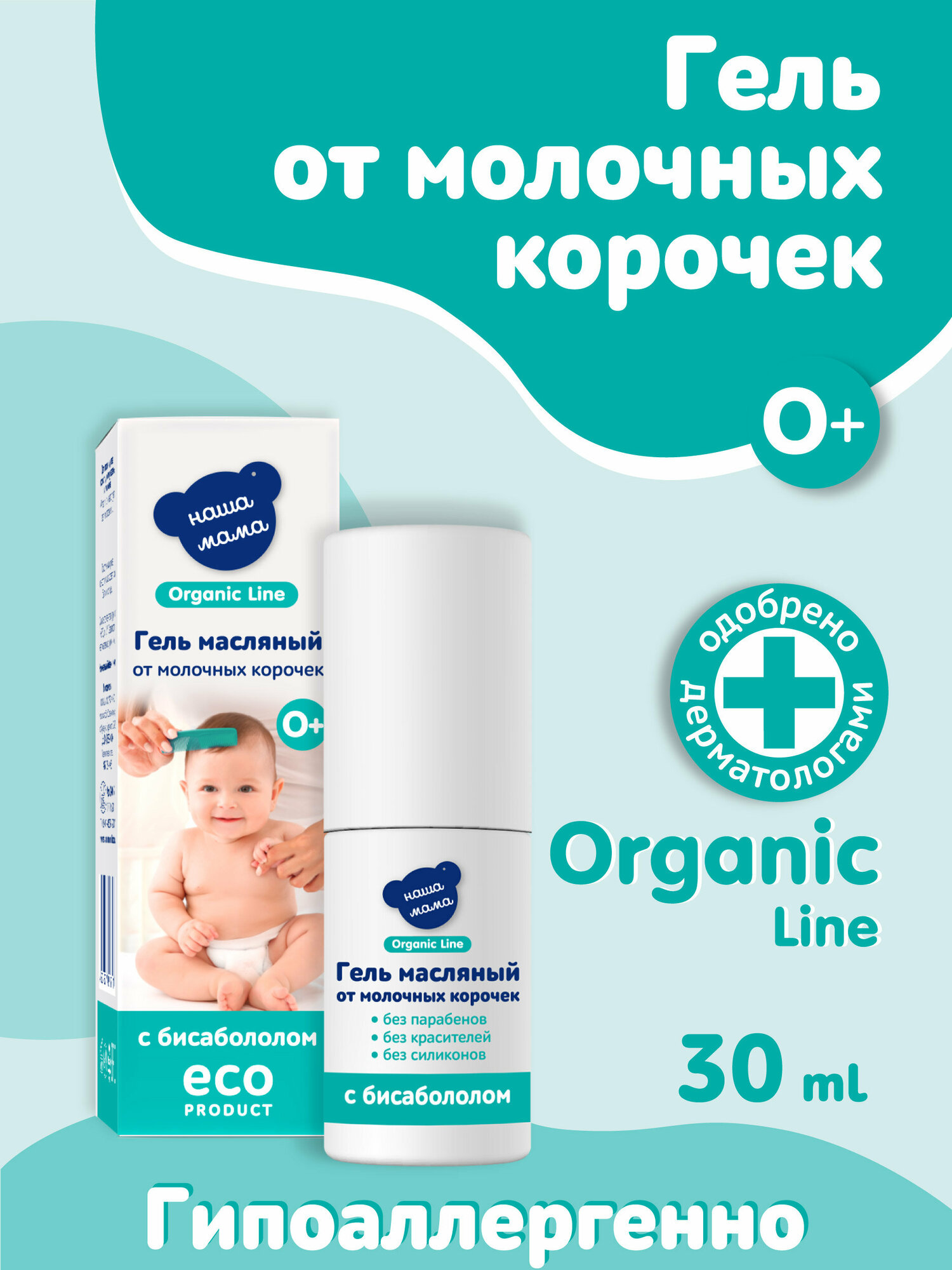 Organic Line/Органик лайн Масляный гель от себорейных, молочных корочек у младенцев серии Наша Мама, 30мл, 0+ интересное: