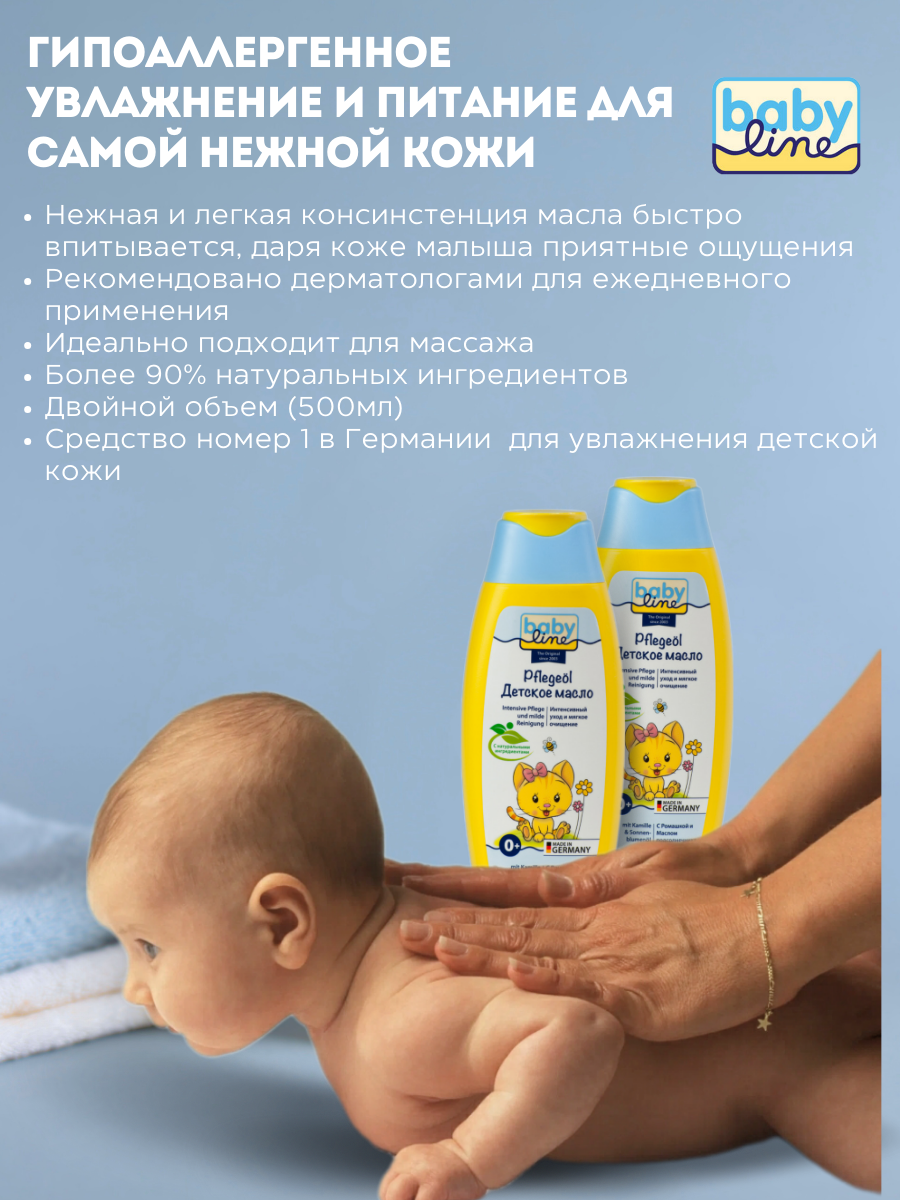 Купить BabyLine Детское масло для ухода и массажа с ромашкой и подсолнечником. 2 шт. по 250 мл. Арт. 3001977-2