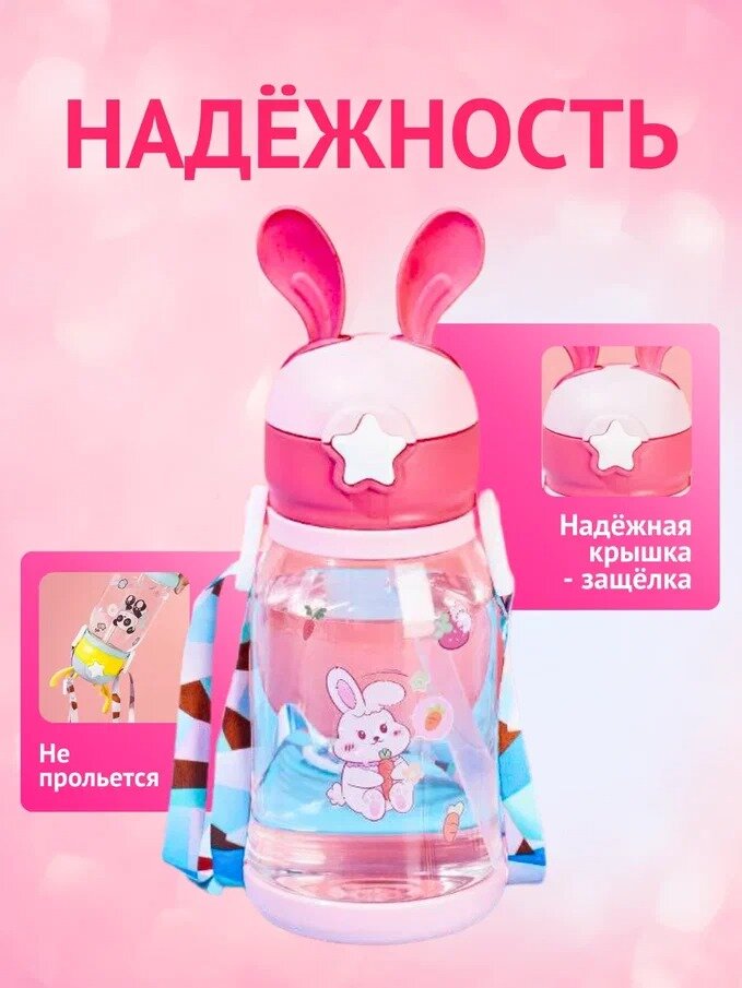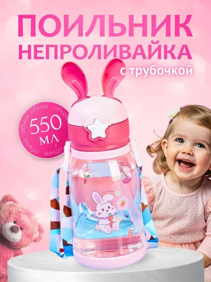 Купить Поильник-непроливайка детский с трубочкой и крышкой-защелкой, розовый, 550 мл