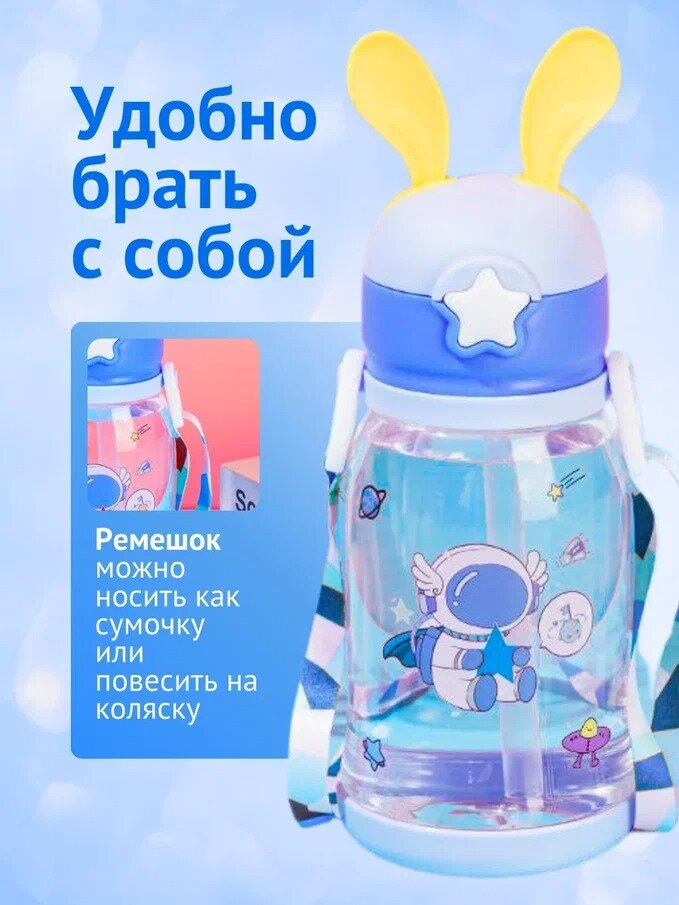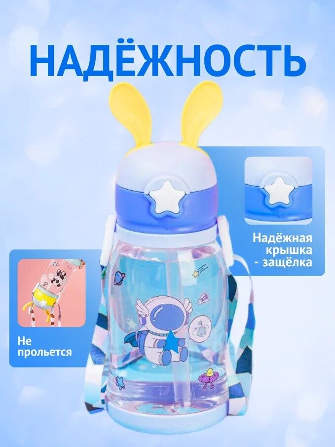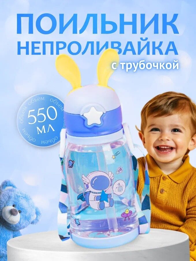 Купить Поильник-непроливайка детский с трубочкой и крышкой-защелкой, синий, 550 мл