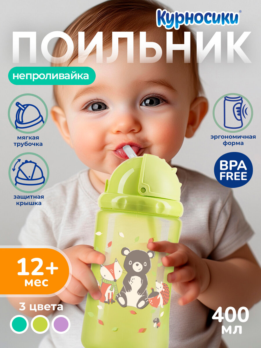 Поильник детский непроливайка Курносики "Лесные звери", с трубочкой, 400мл, от 1 года интересное: