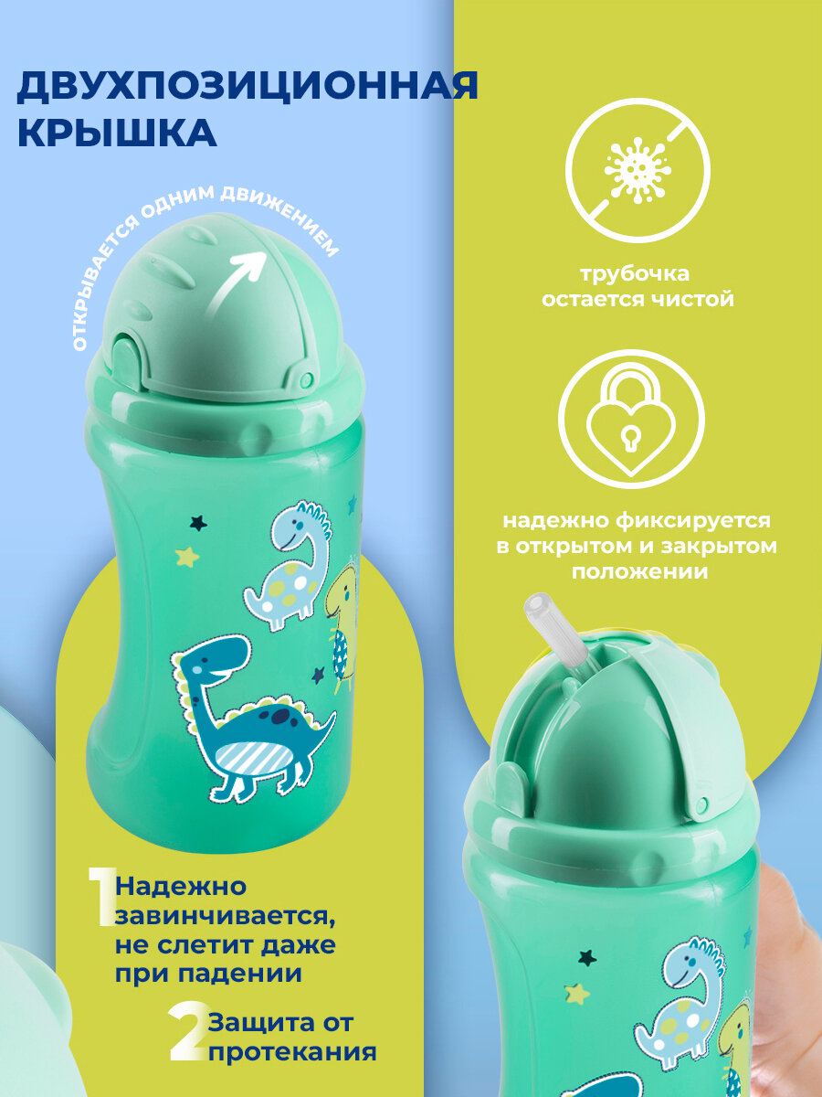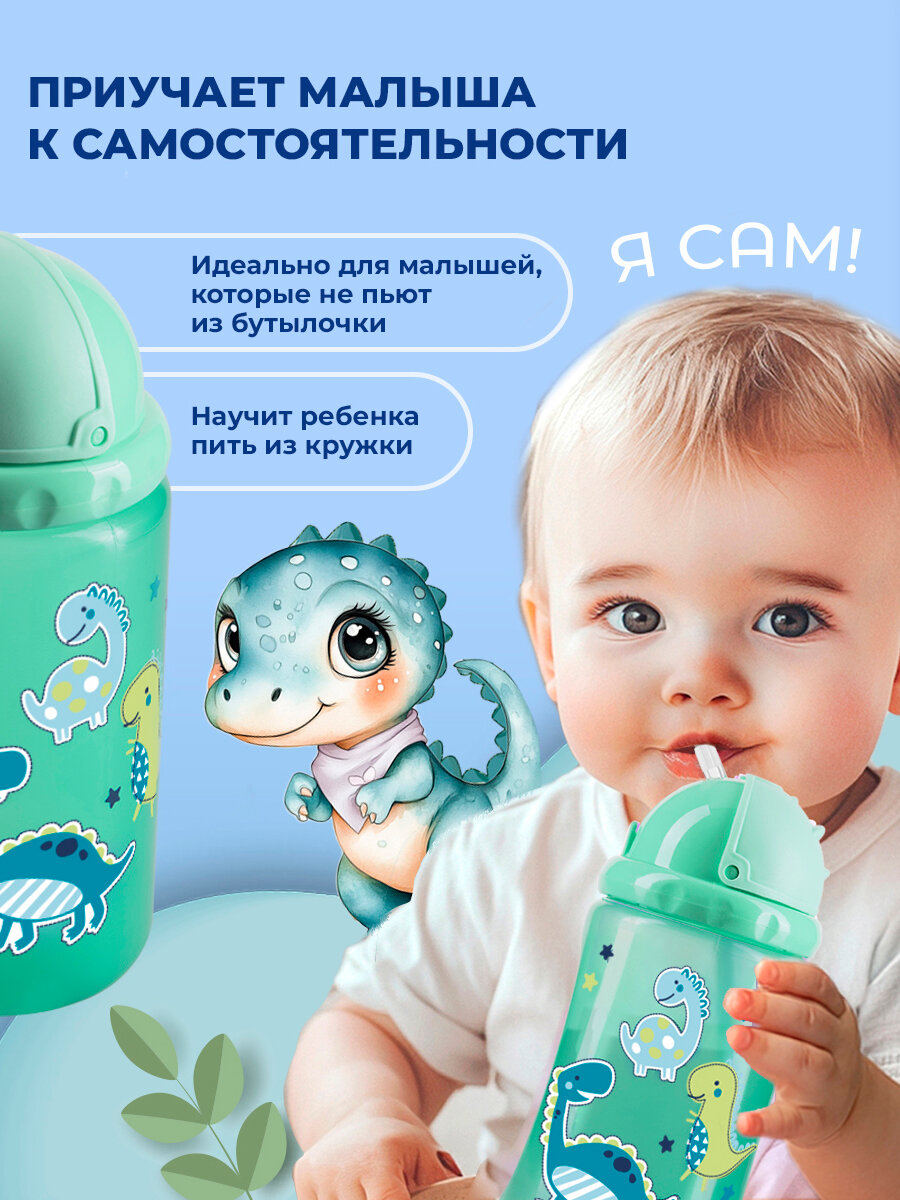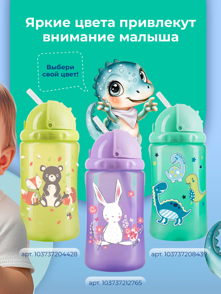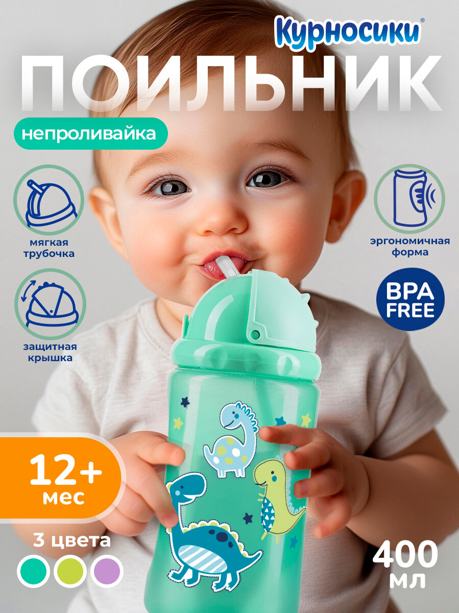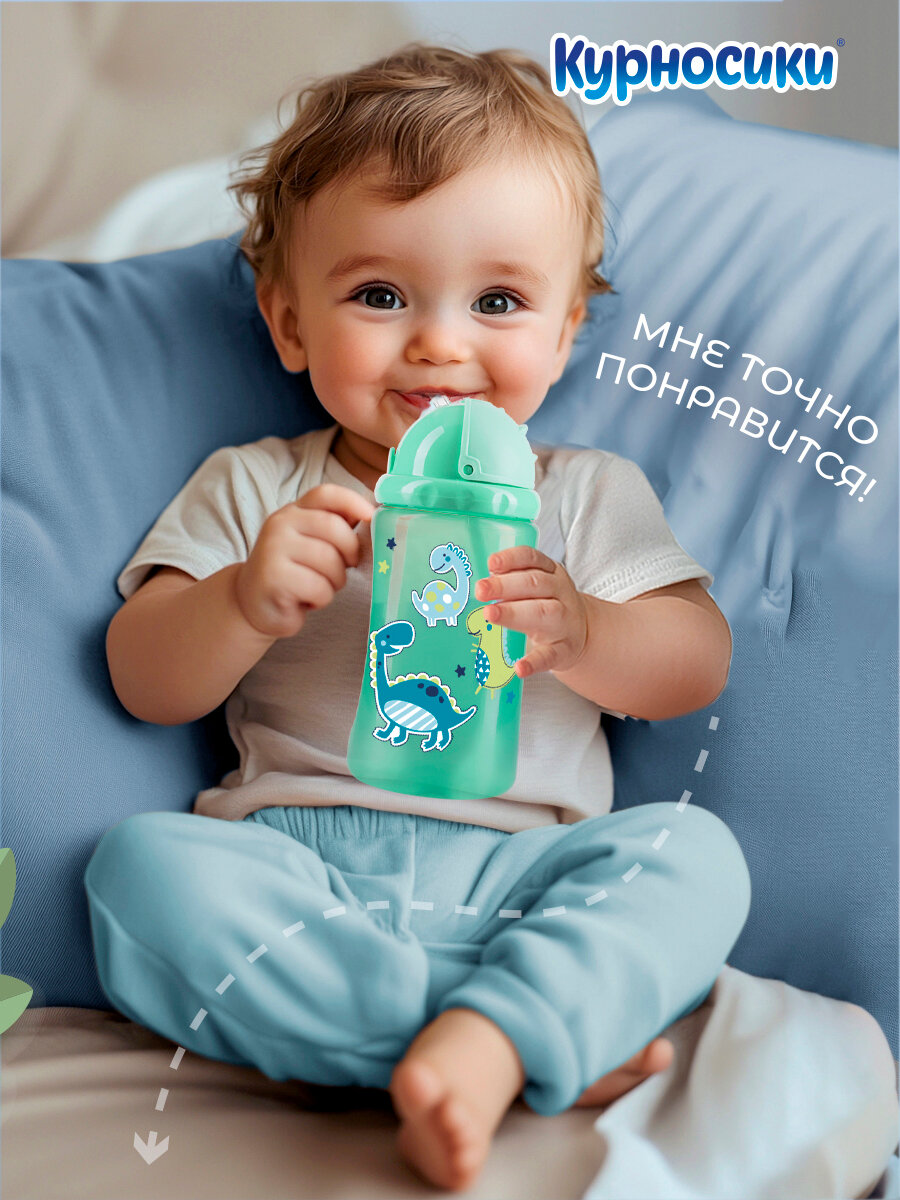Поильник детский непроливайка Курносики "Динозаврики", с трубочкой, 400мл, от 1 года интересное: