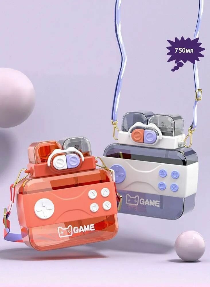 Купить Стильный игровой поильник с ремешком и двумя носиками 750 мл