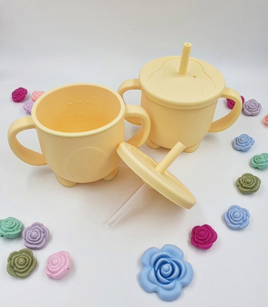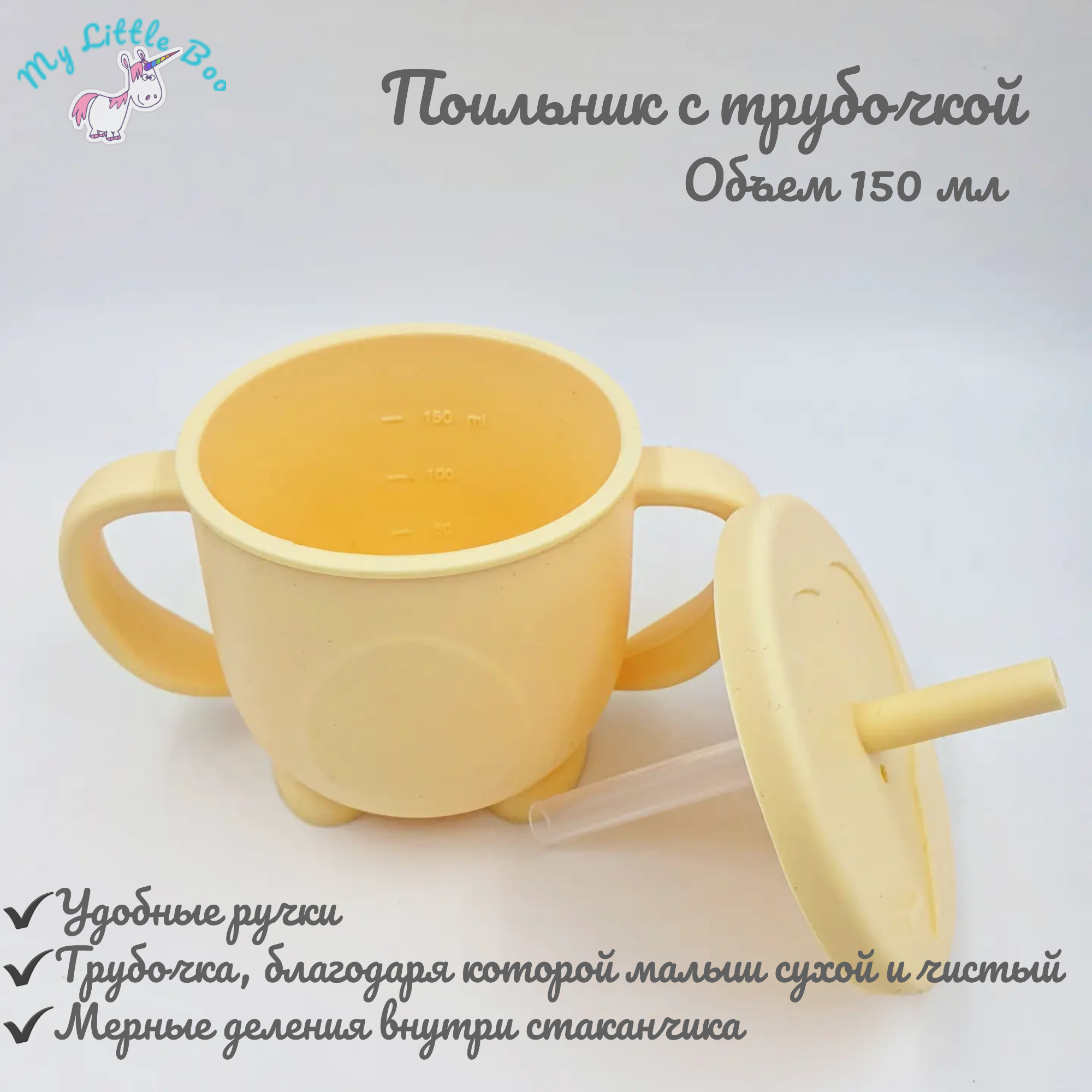 Поильник силиконовый с ручками и трубочкой для малышей, 150 мл, жёлтый, My Little Boo интересное: