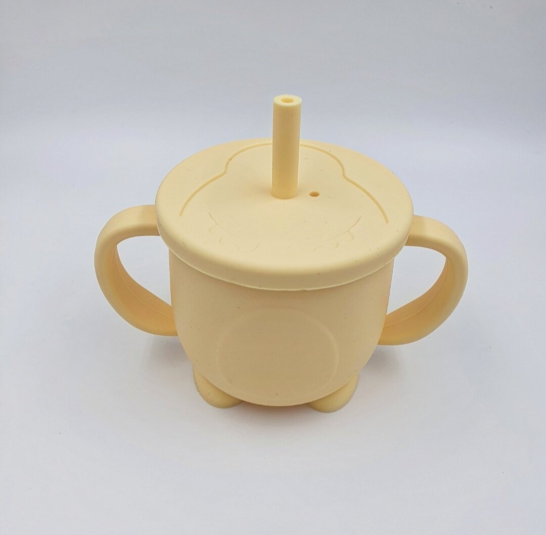 Купить Поильник силиконовый с ручками и трубочкой для малышей, 150 мл, жёлтый, My Little Boo