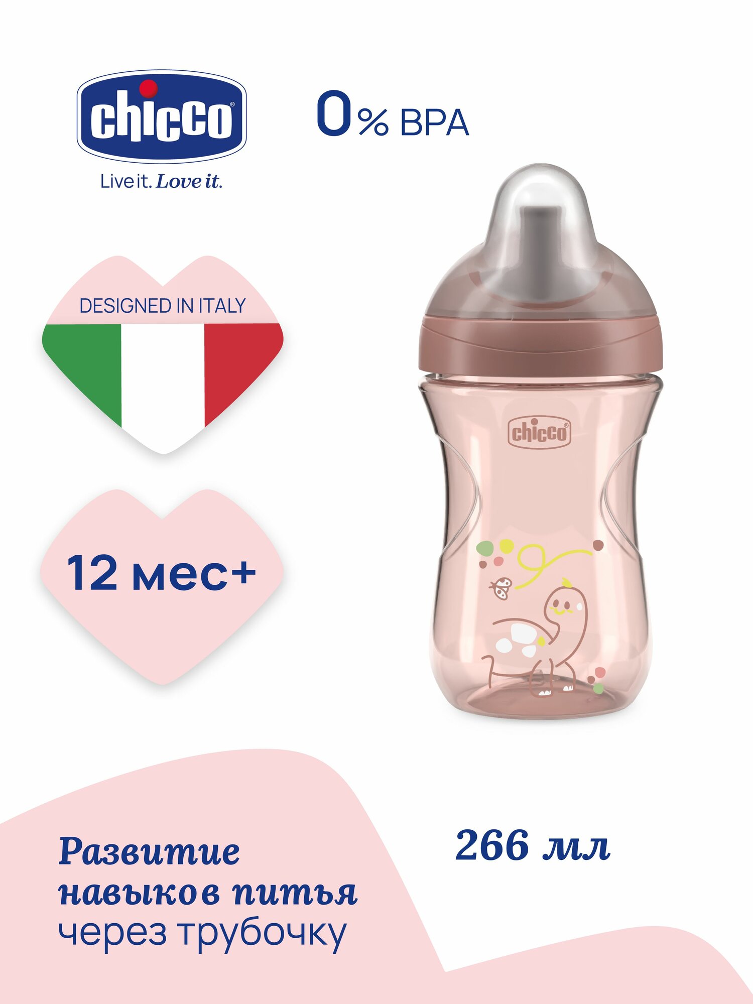 Поильник Chicco Advanced Cup 12м+, розовый интересное: