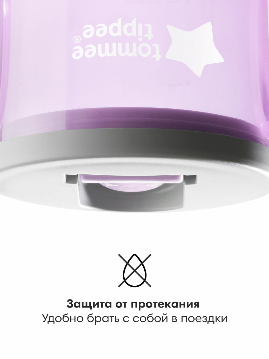 Поильник-непроливайка детский Tommee Tippee с ручками 190 мл, 4 мес+, сиреневый интересное: