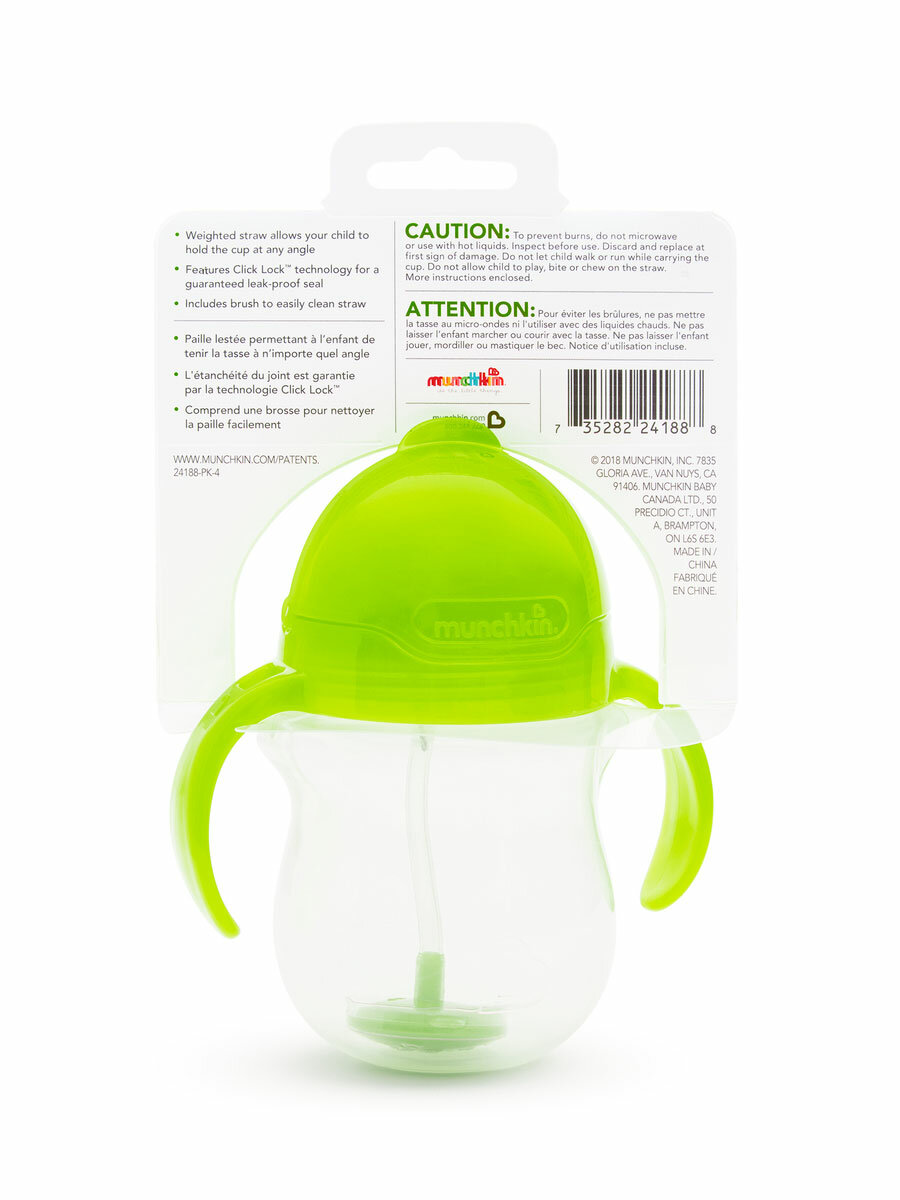 Купить Набор поильников с трубочками Munchkin Click Lock, 207 и 280мл, зеленый