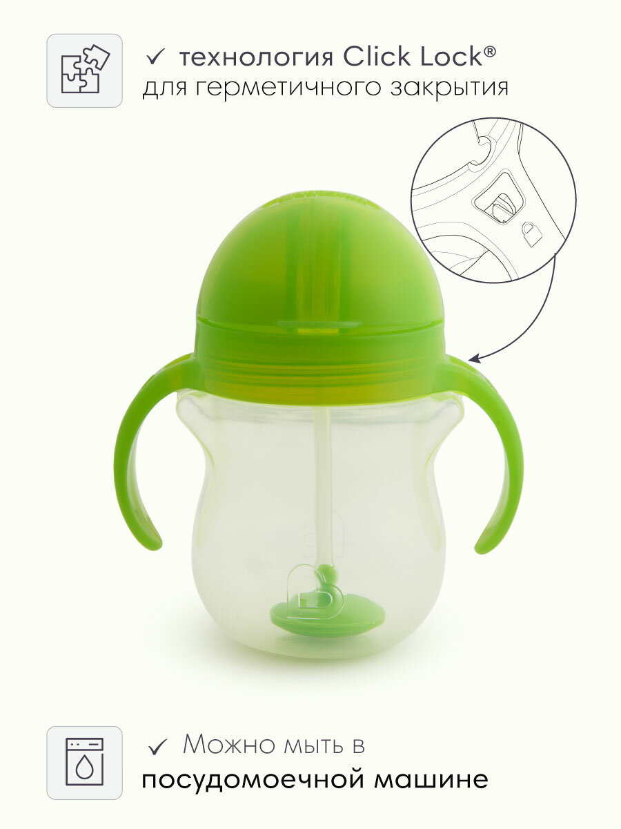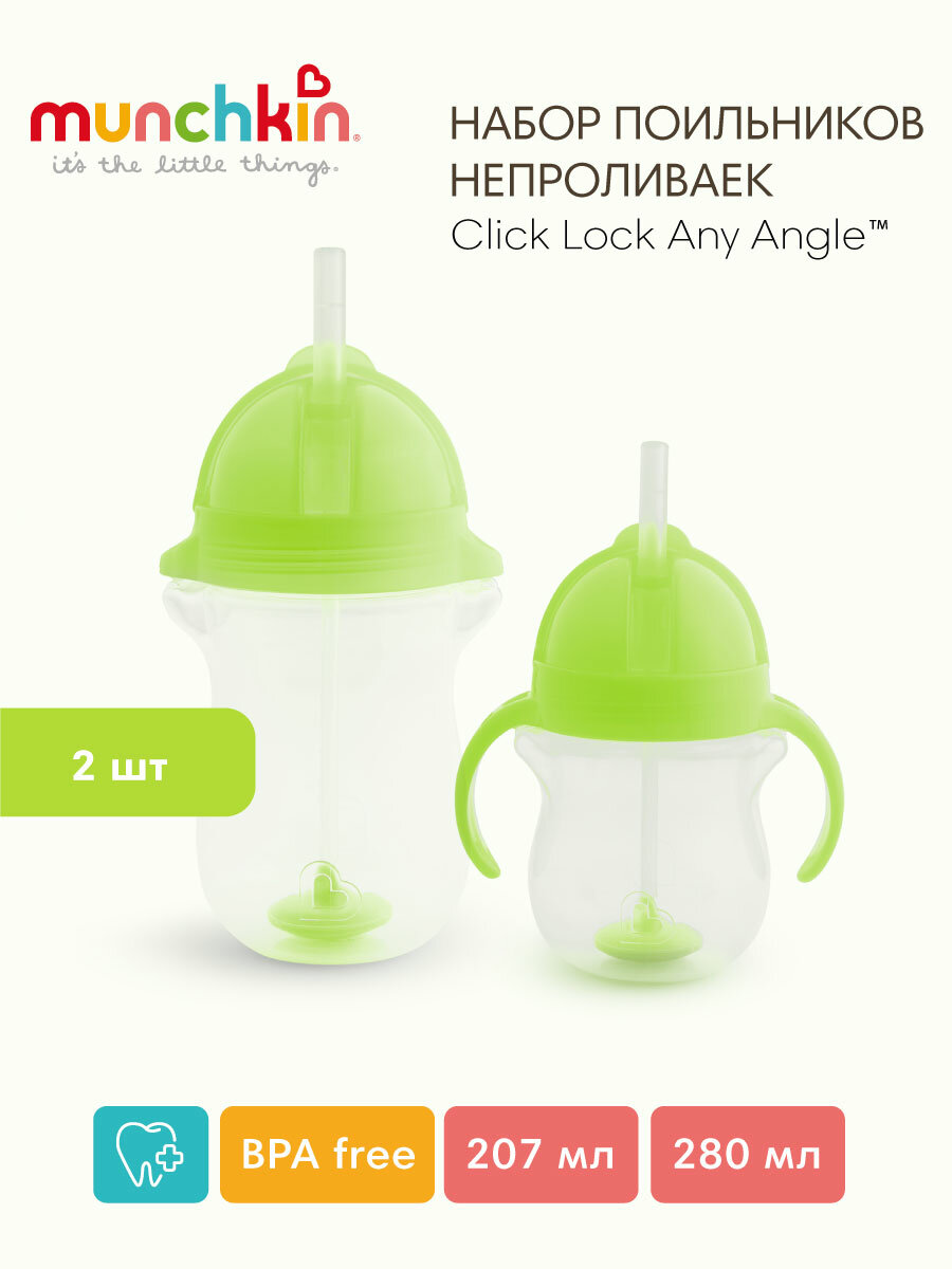 Набор поильников с трубочками Munchkin Click Lock, 207 и 280мл, зеленый интересное:
