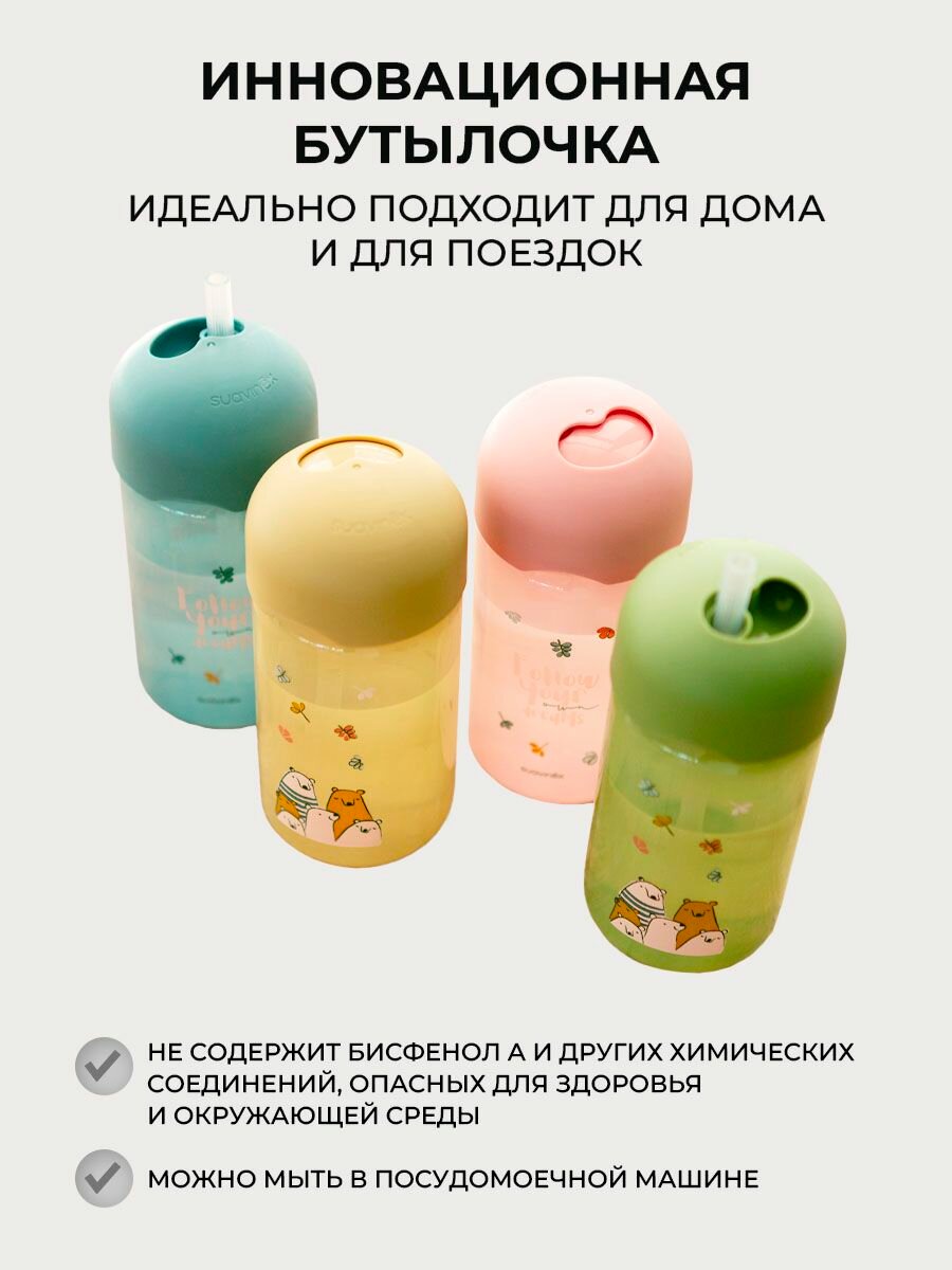 SUAVINEX поильник с трубочкой детский 18+ месяцев, бутылочка для воды 340 мл, поильник непроливайка для ребенка интересное: