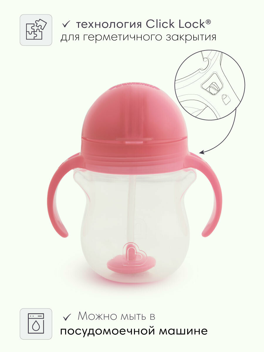Поильник с трубочкой и ручками Munchkin Click Lock Any Angle Розовый/Сиреневый 2шт. 207 мл. 6+ интересное: