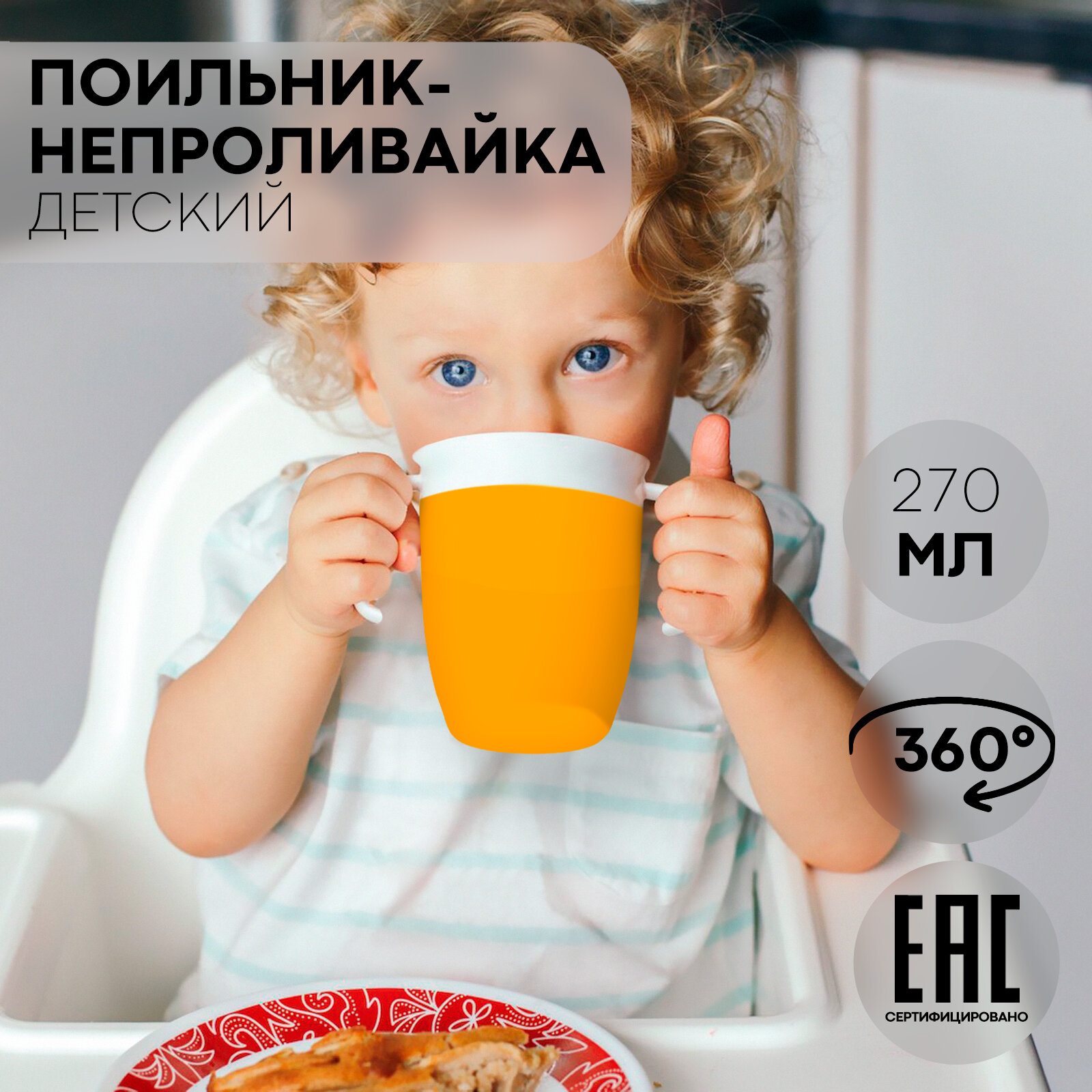 Обучающая чашка поильник непроливайка, бренд Картофан, 207 мл, оранжевая интересное: