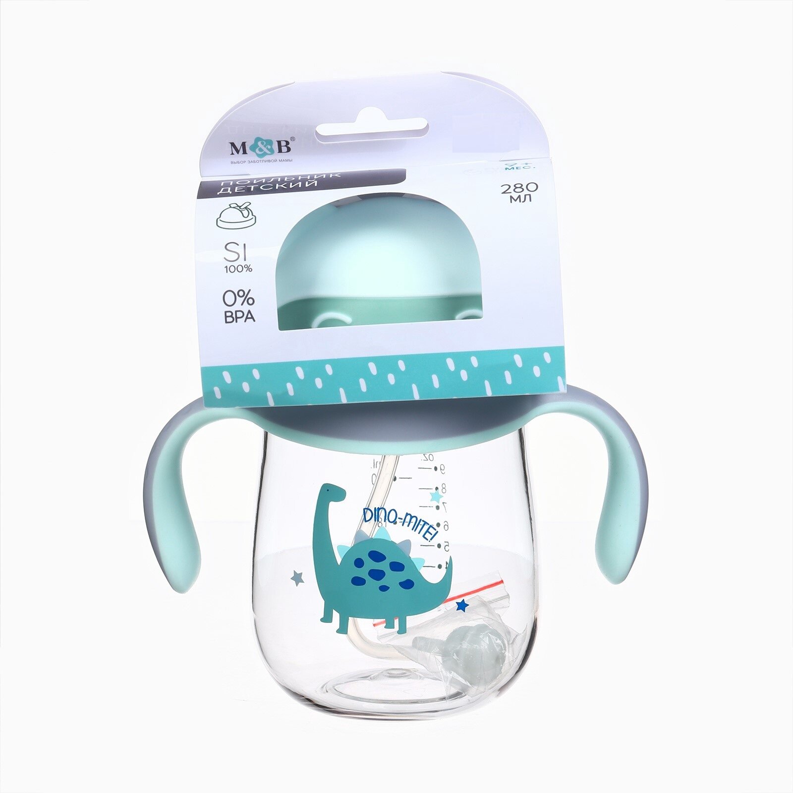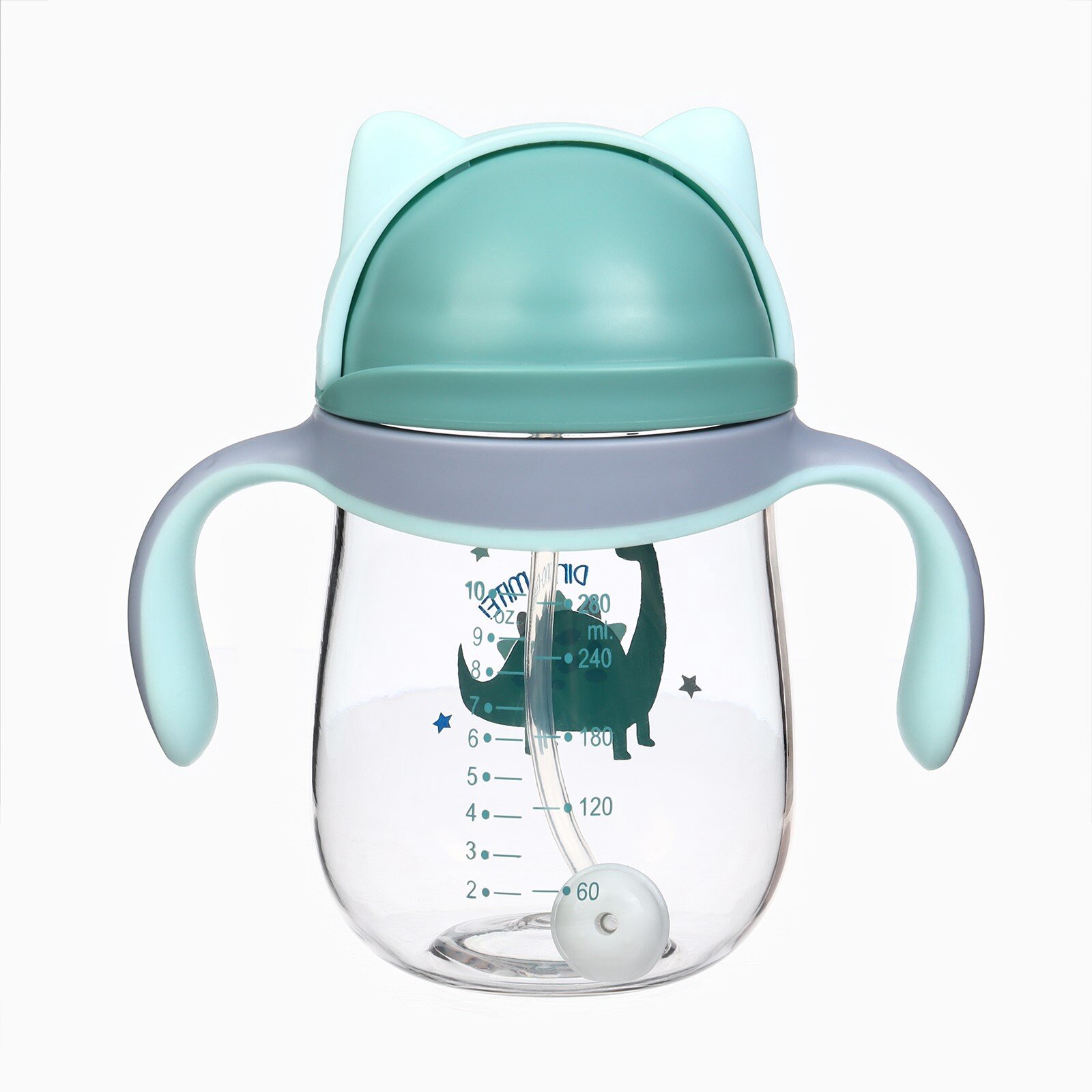 Поильник детский с трубочкой "Котик", 280мл, +9мес, цвет серо-голубой, Mum&Baby интересное: