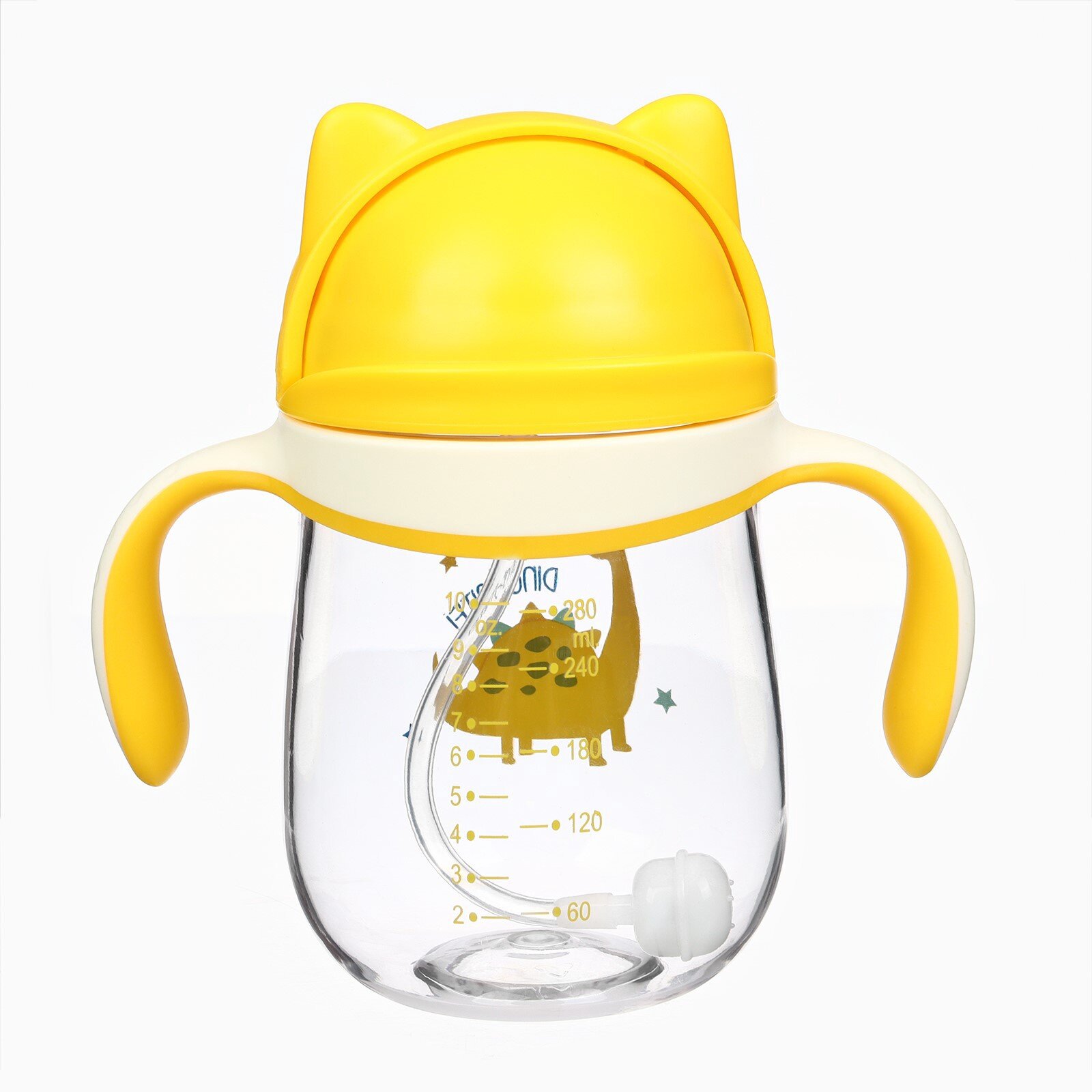 Купить Поильник детский с трубочкой «Котик», 280мл, +9мес, цвет молочно-желтый