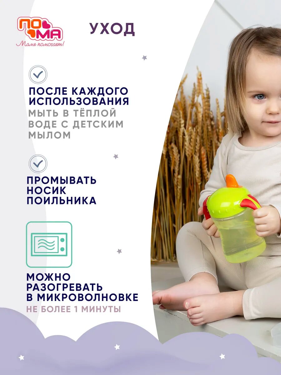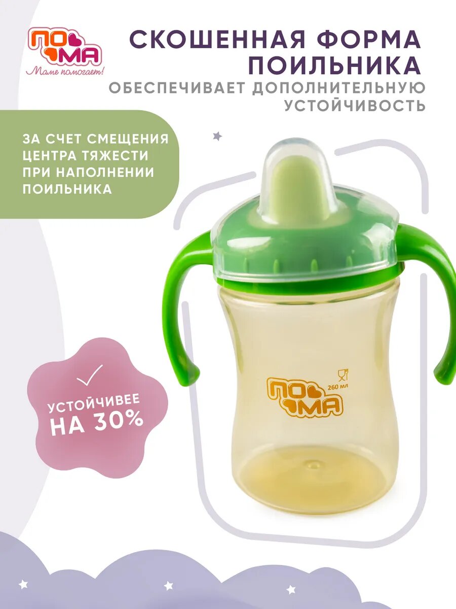 Поильник-непроливайка ПОМА, силикон, 260мл, от 6 мес, с мягким носиком интересное: