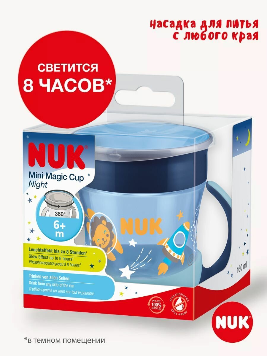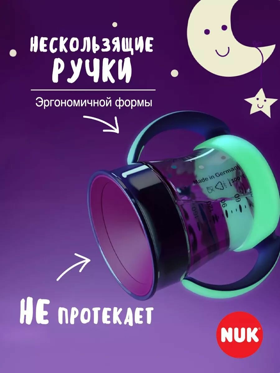 NUK EVOLUTION Поильник непроливайка для девочки MINI MAGIC светящийся в темноте 160 мл (+6 мес) интересное: