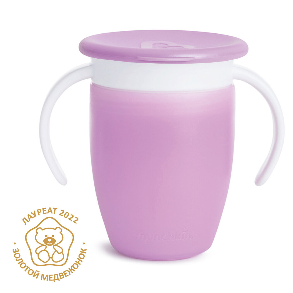 Купить Поильник непроливайка детский Munchkin MIRACLE® 360° сиреневый, 207 мл/296 мл. с 6 мес, с крышкой