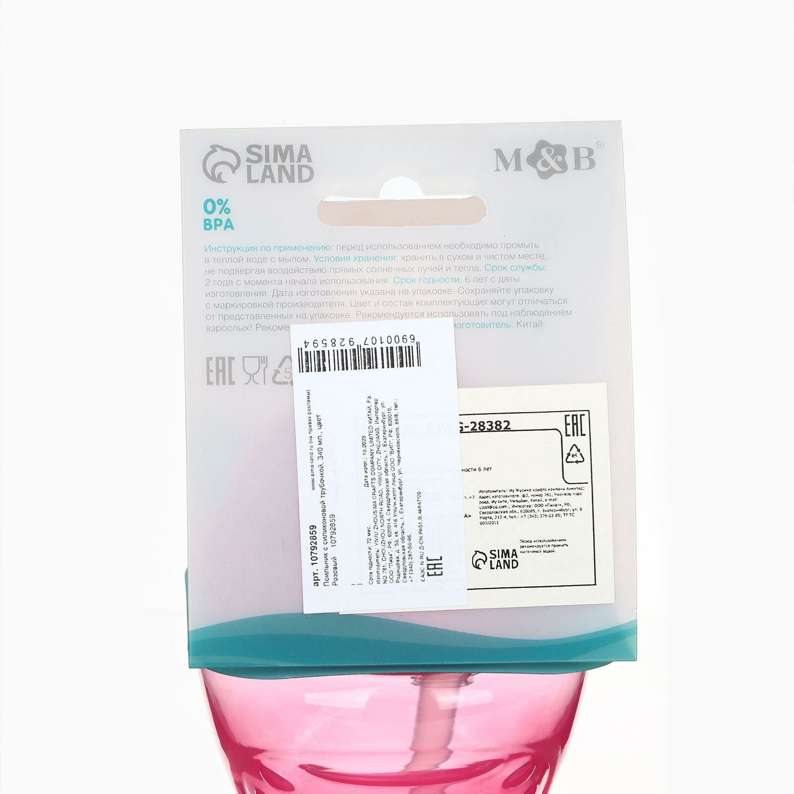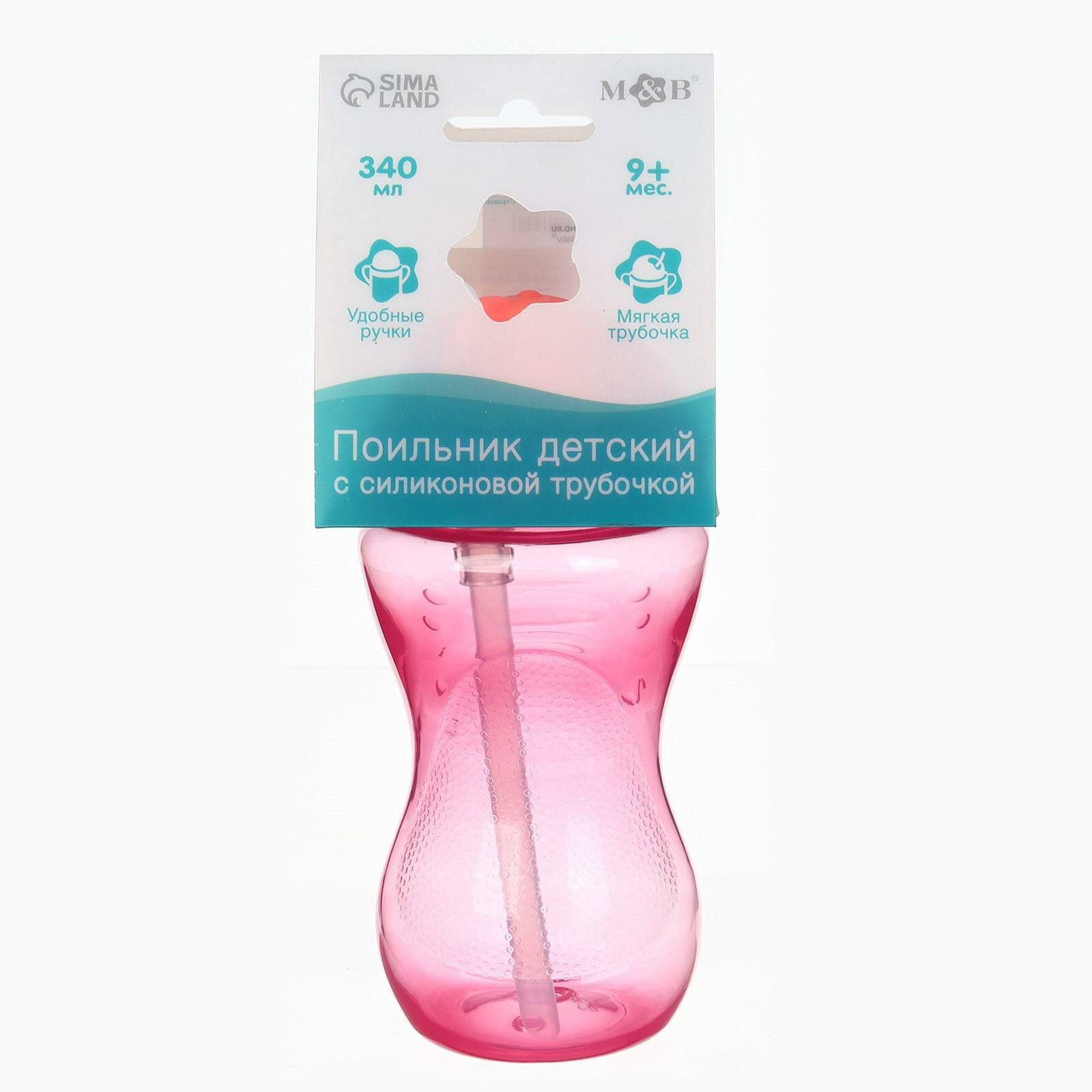 Поильник с силиконовой Mum&Baby трубочкой, 340 мл, цвет розовый интересное: