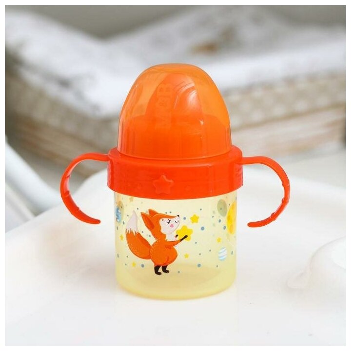 Купить Поильник детский с твёрдым носиком «Лисята. Мамы и малыши», с ручками, 150 мл, цвет оранжевый