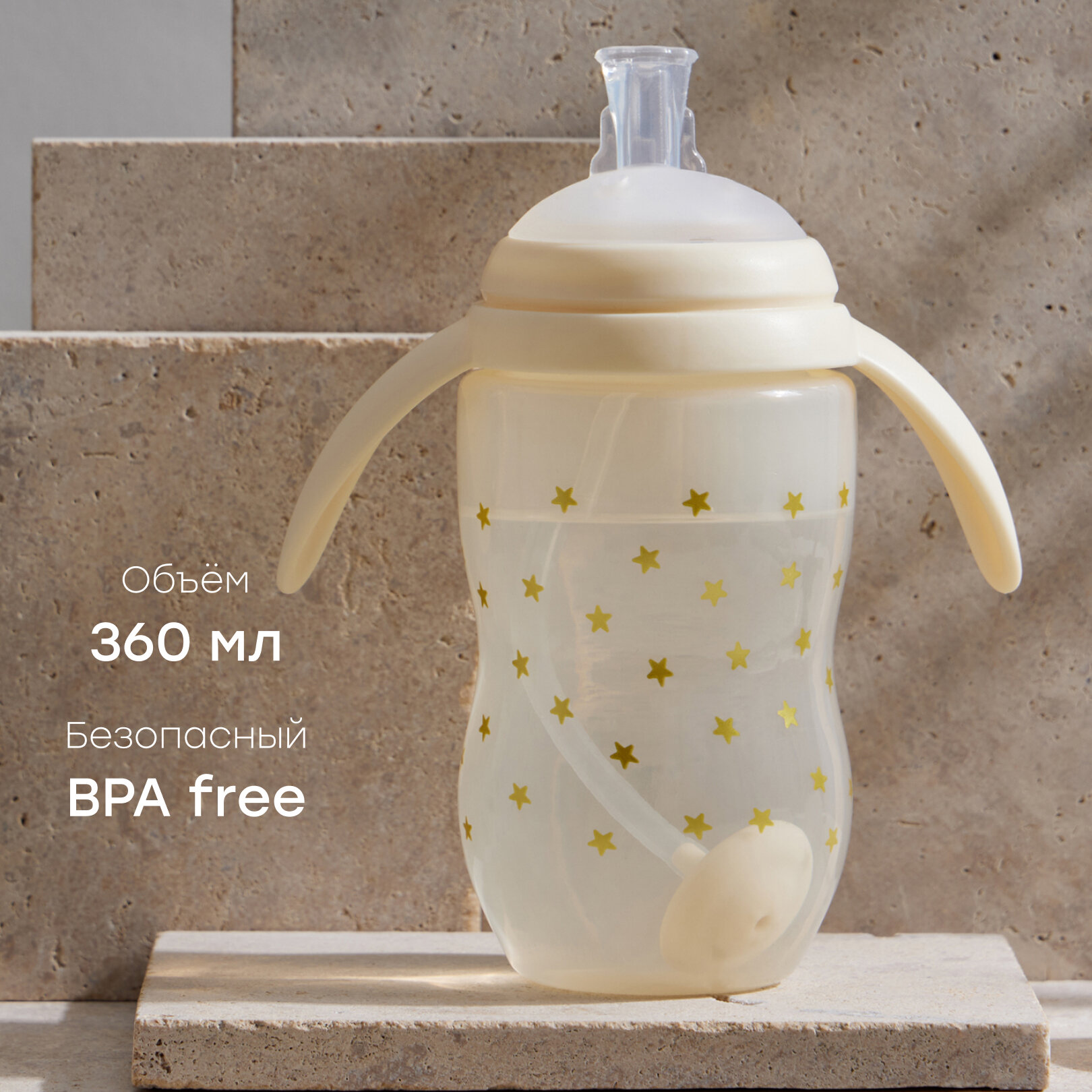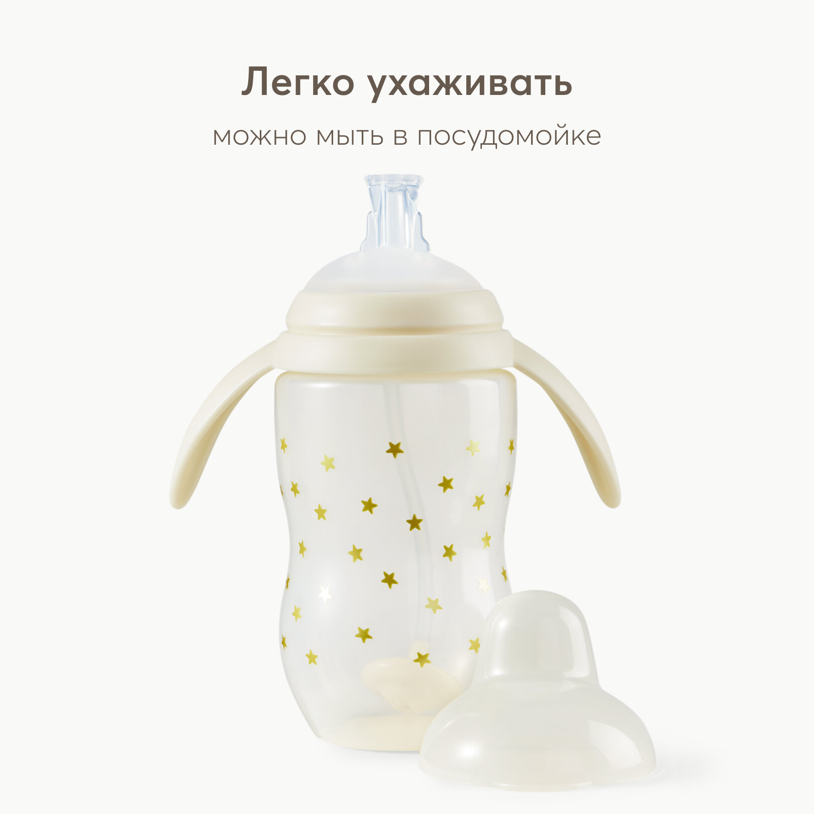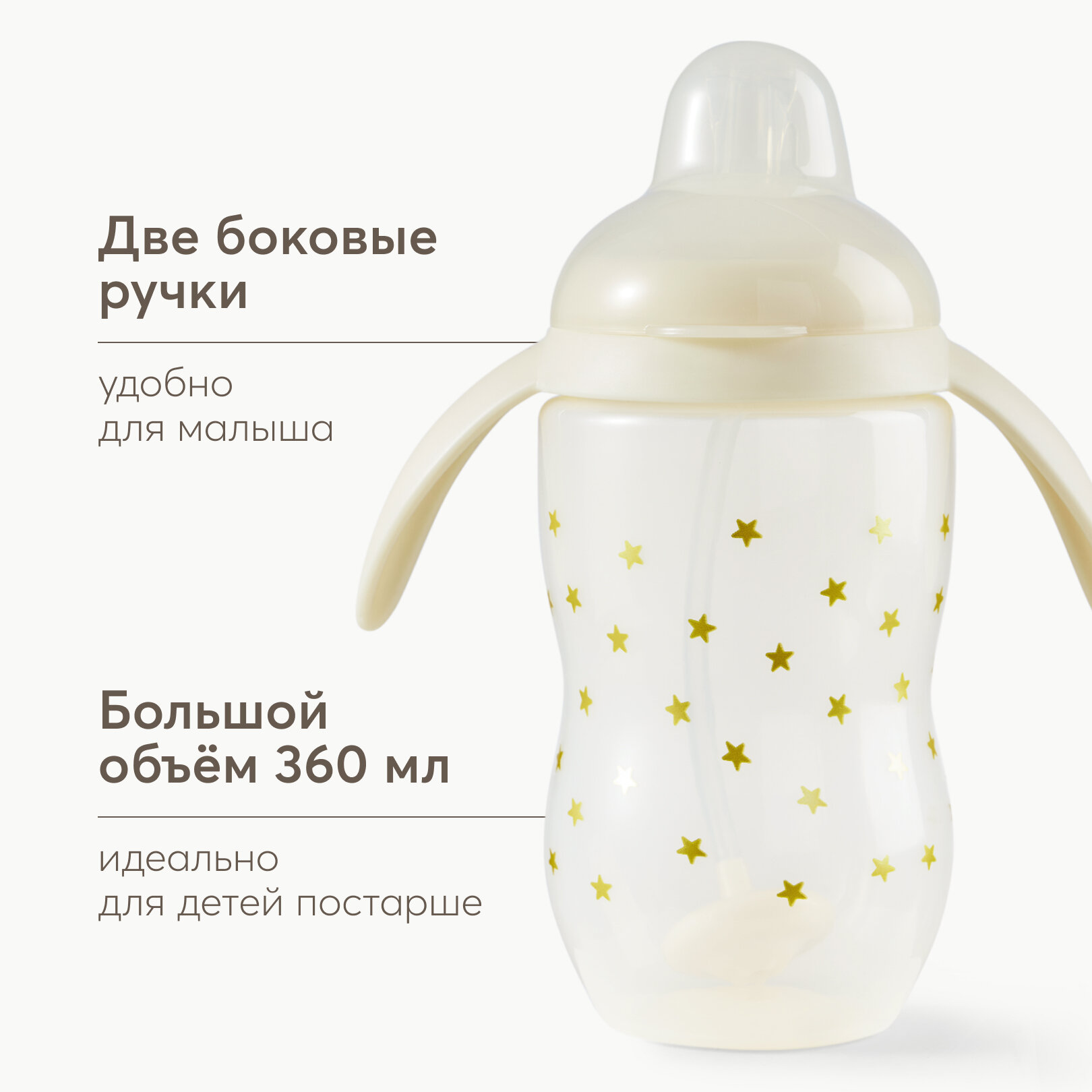 14016, Поильник детский с трубочкой и ручками Happy Baby, поильник непроливайка детский 360 мл, кремовый интересное: