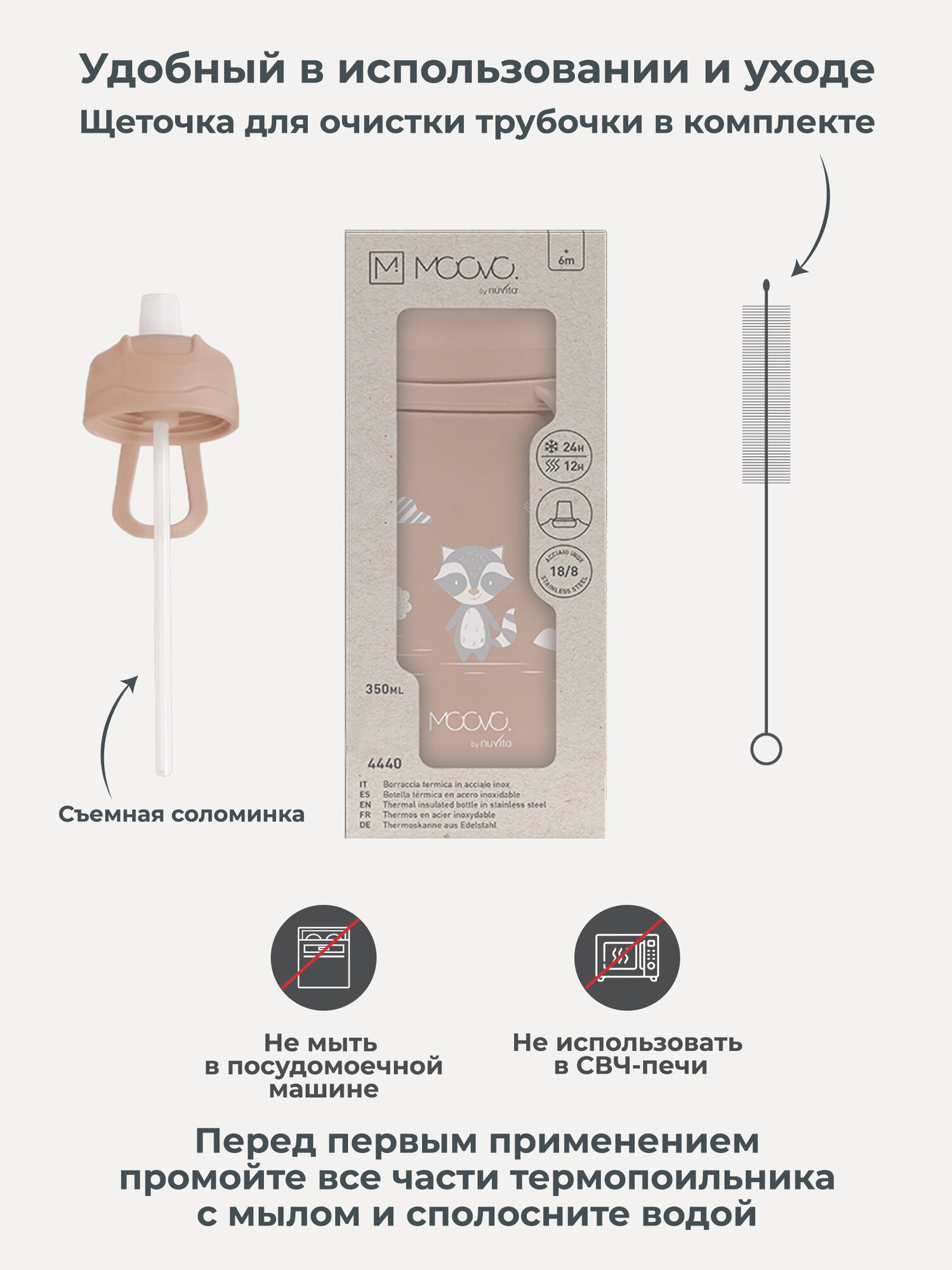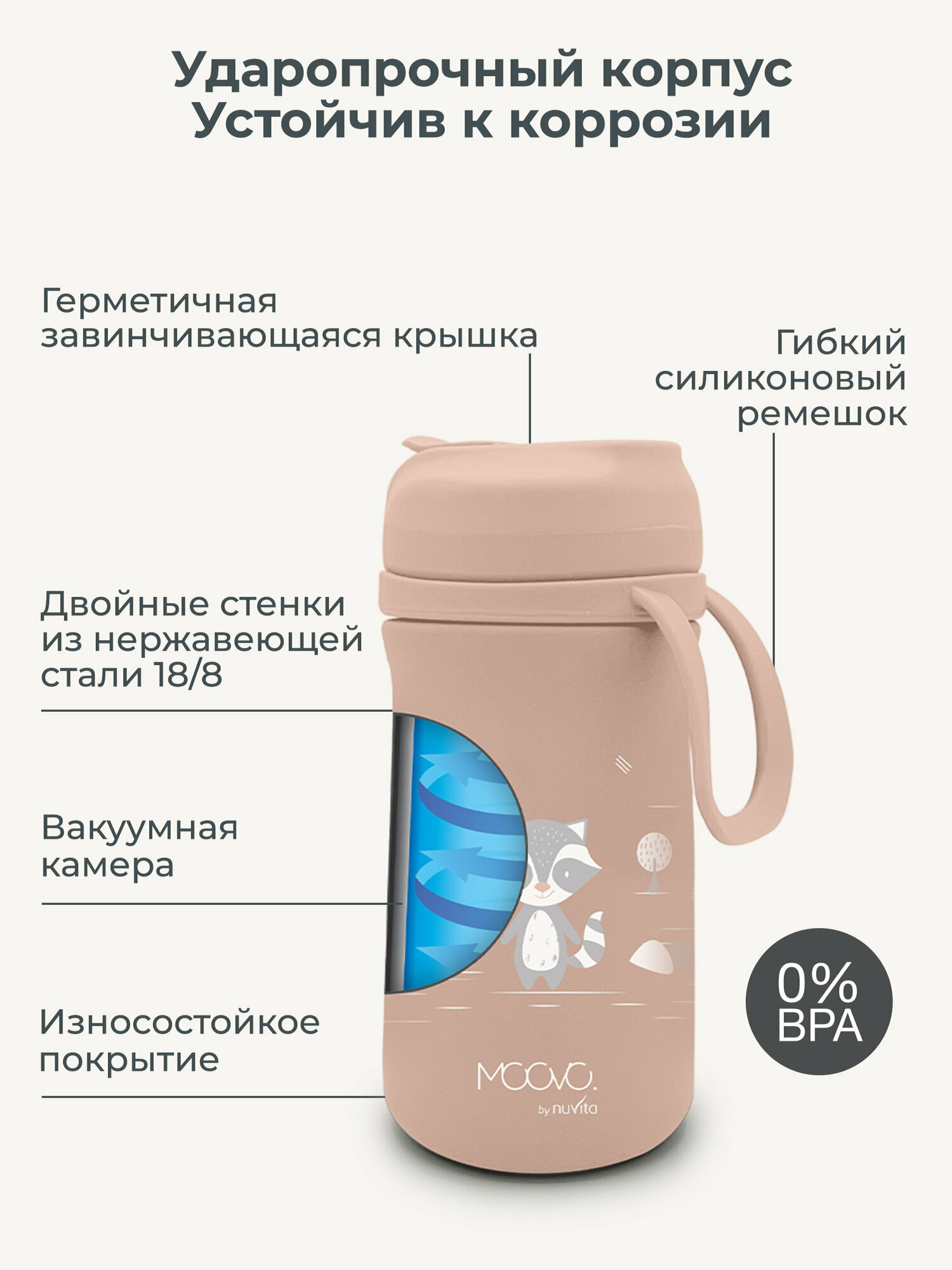 Термос-поильник детский с мягким носиком Nuvita (термопоильник - непроливайка с ремешком), 350 мл, розовый интересное: