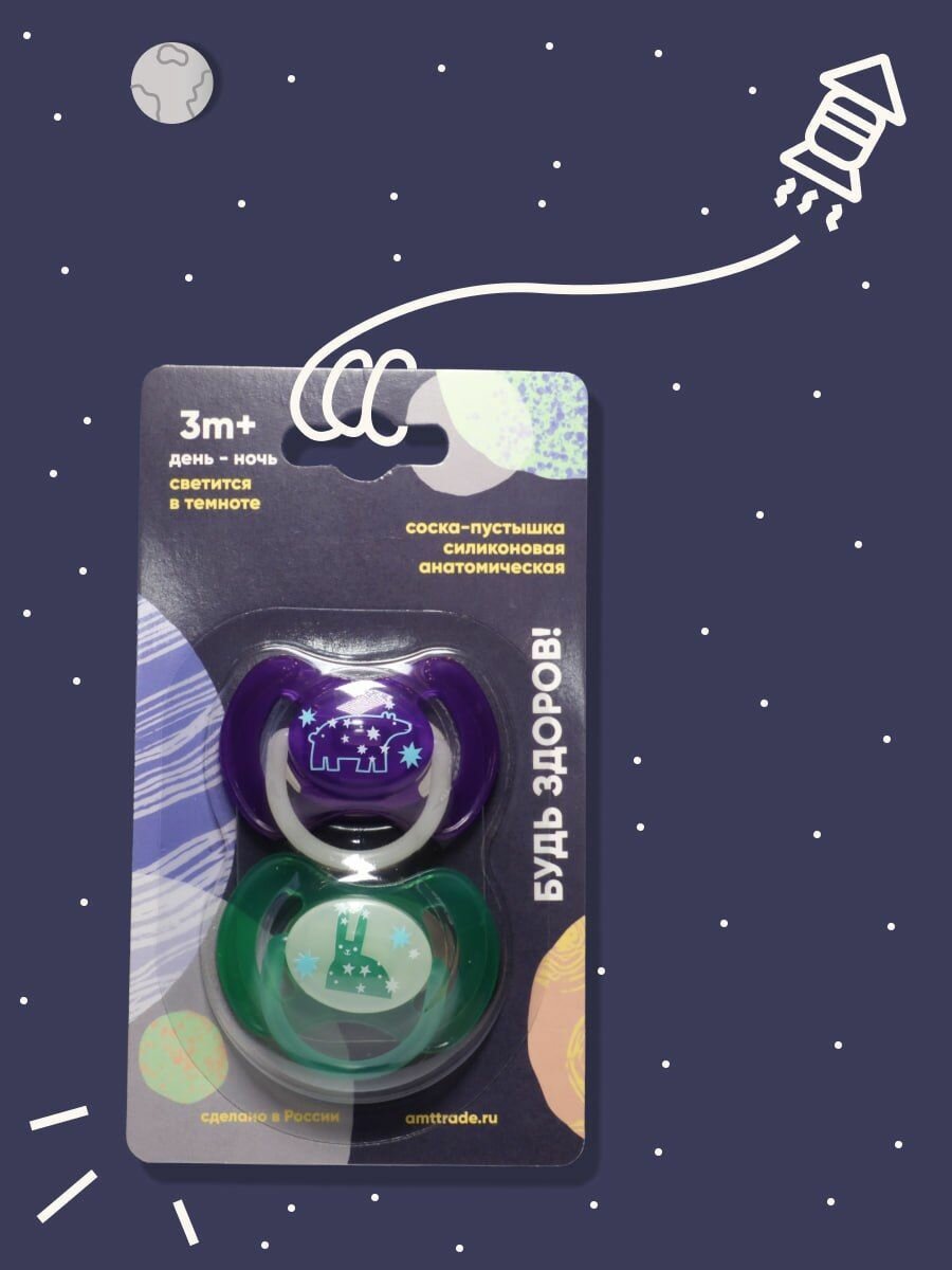 Соска-пустышка силиконовая анатомическая "день-ночь" 3+ 2 шт интересное: